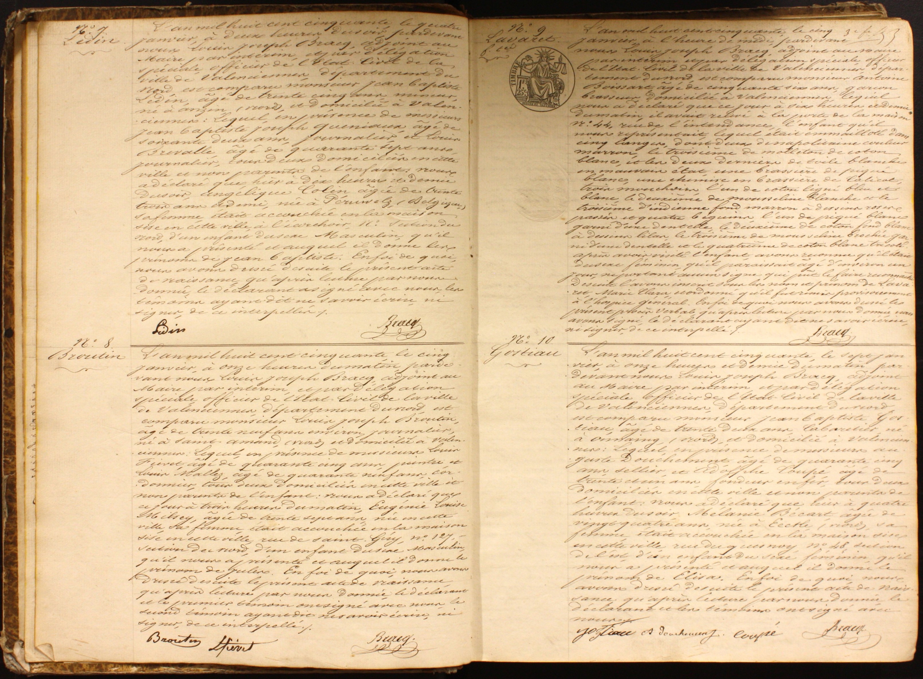 En parcourant le registre des naissances de Valenciennes pour l'année 1850, il manque des actes :