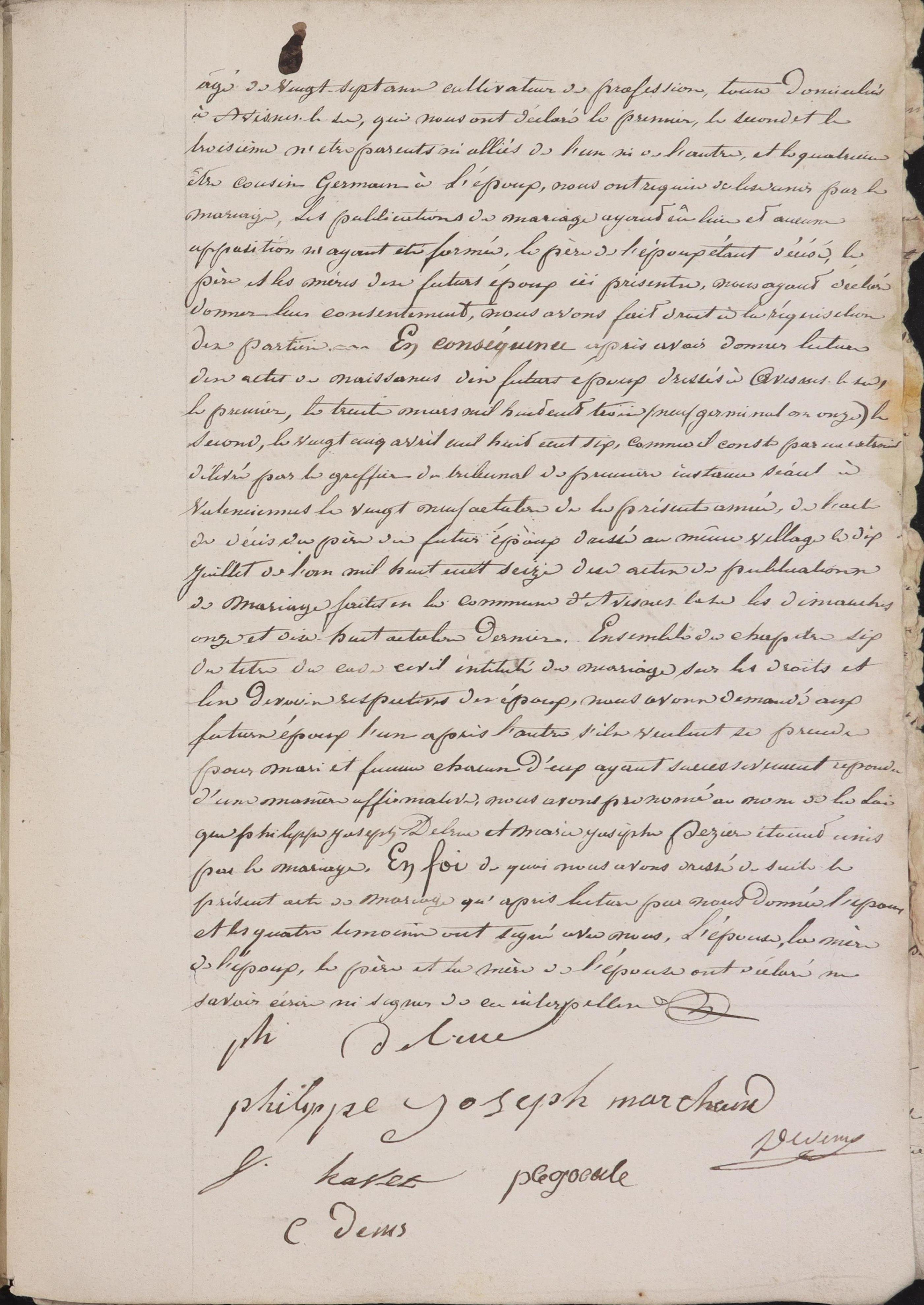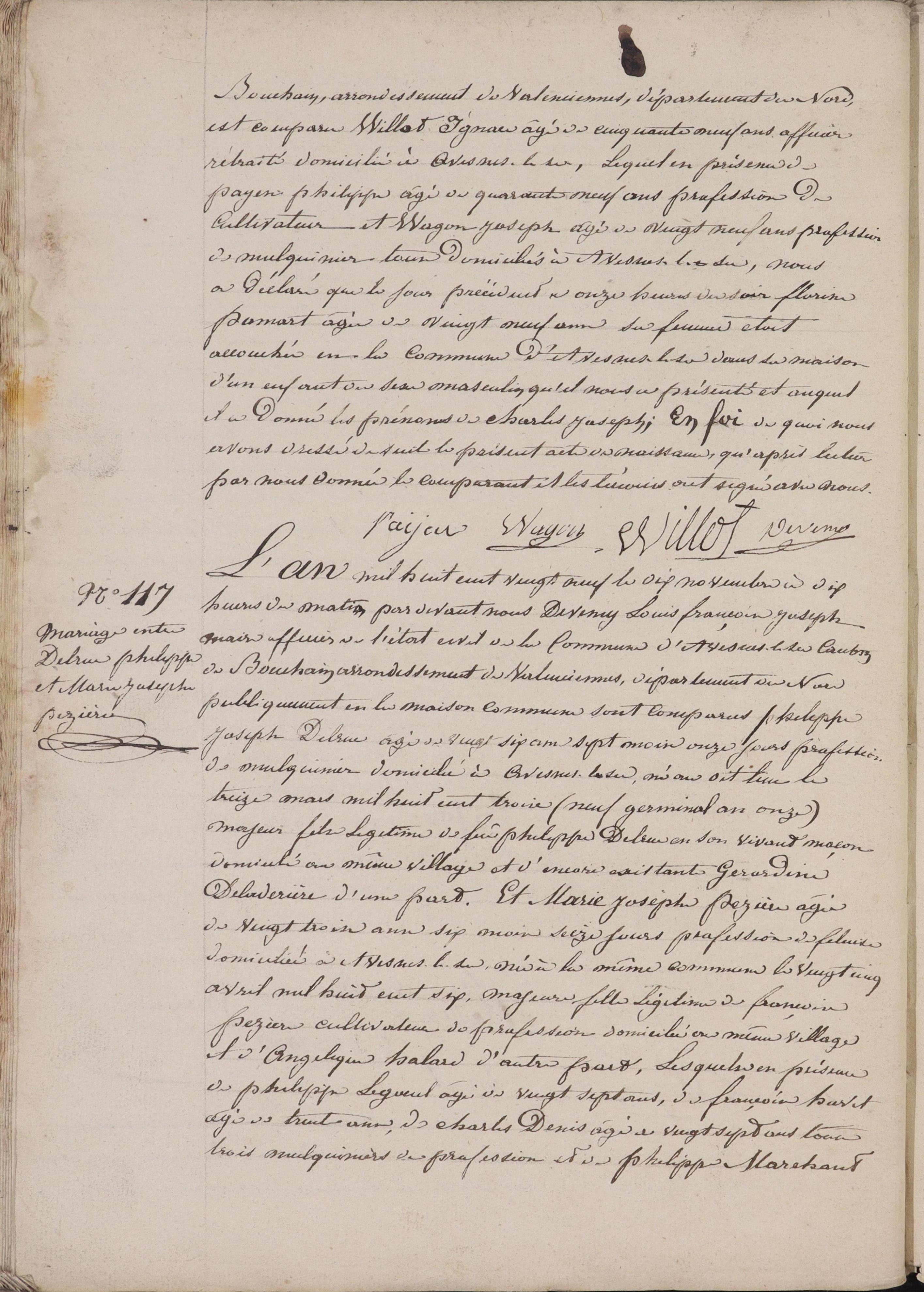 L'acte de mariage concernant : DELRUE Philippe et PEZIERE Marie Joseph