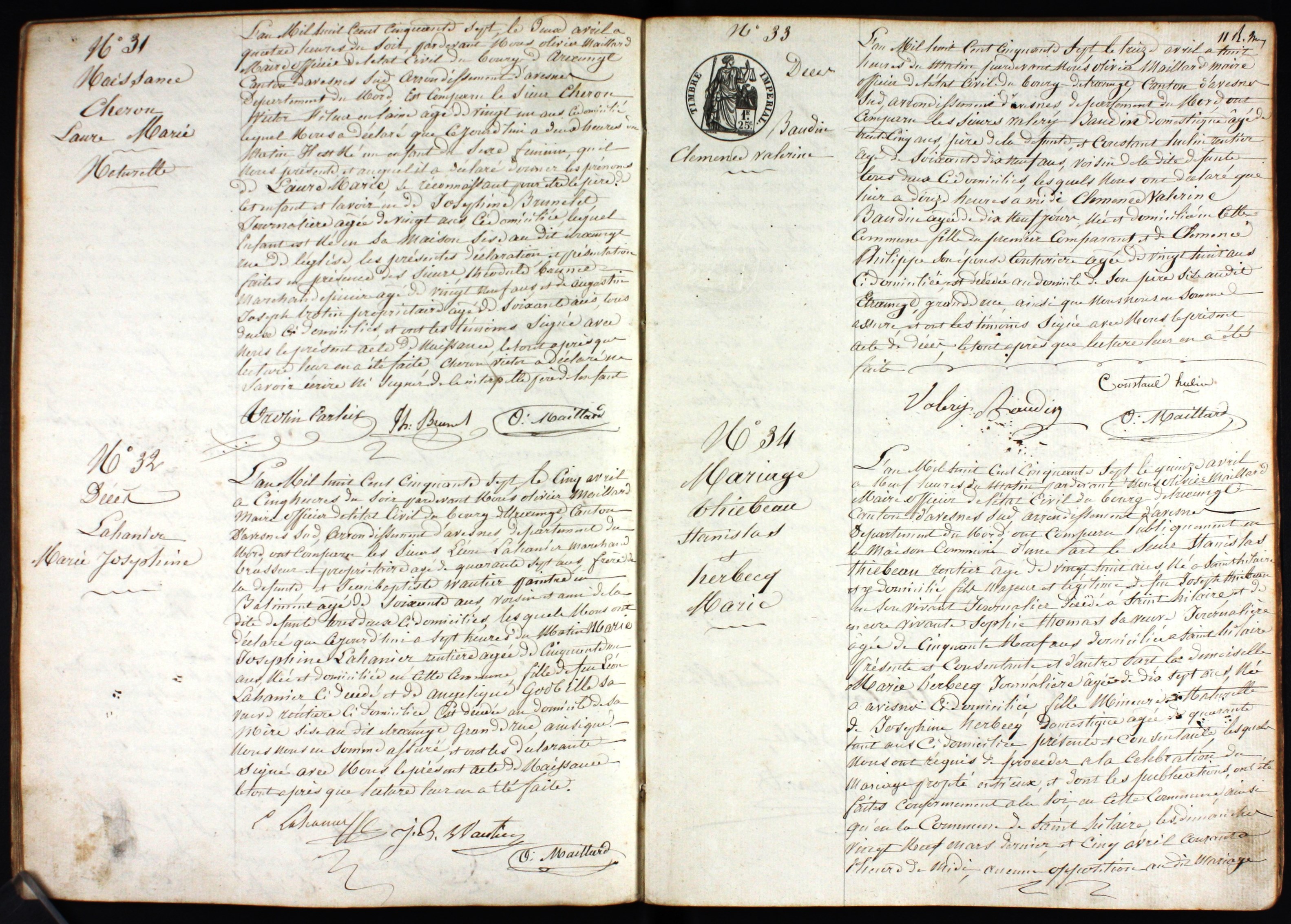 Je cherche l'acte de mariage de Edmond Valery FRANCK et de Estelle CUISSET, maries en la commune de Etroeungt le 02/04/1857. Le registre en question est numérisé (Etroeungt. NMD 1833-1861, pp. 1114-1115.), mais il semblerait que des pages aient été oubliées ! En effet, on passe de l'acte #28 a l'acte #34 dans le registre numérisé !