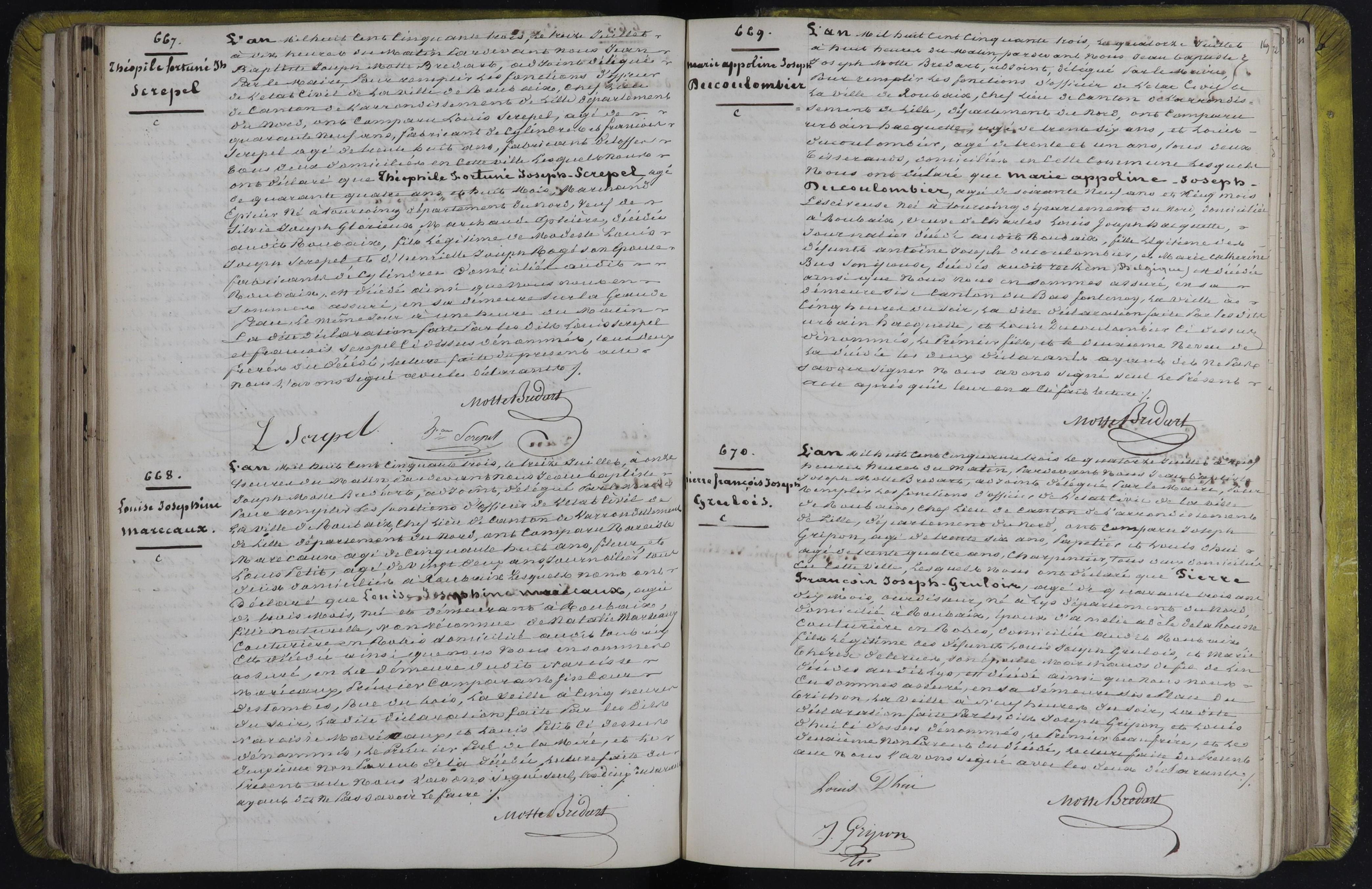 Dans le registre des décès de Roubaix, années 1852-1854 (5MI047R072), il manque la page avec les actes 667 à 670 pour l'année 1853.