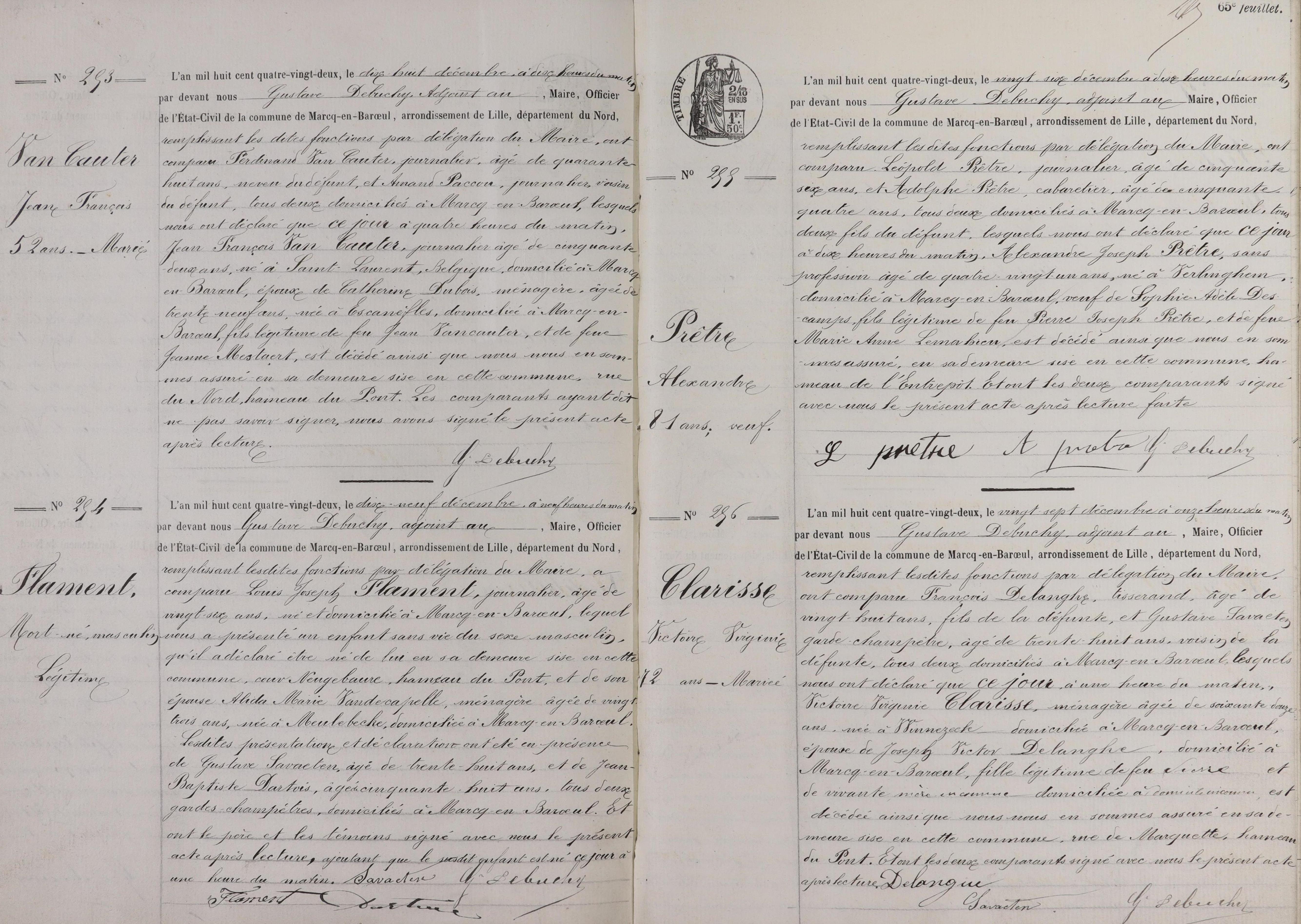 Je recherche l'acte de deces 256 le 27 decembre 1882 a Marcq-enBaroeul de Clarisse Virginie Victoire.
