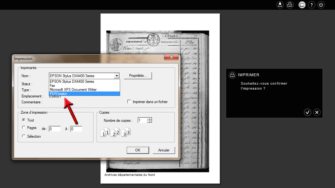 • Si vous avez installé une "imprimante virtuelle" qui vous permet de réaliser un pdf, c'est au choix de l'imprimante qu'il vous faut la sélectionner :