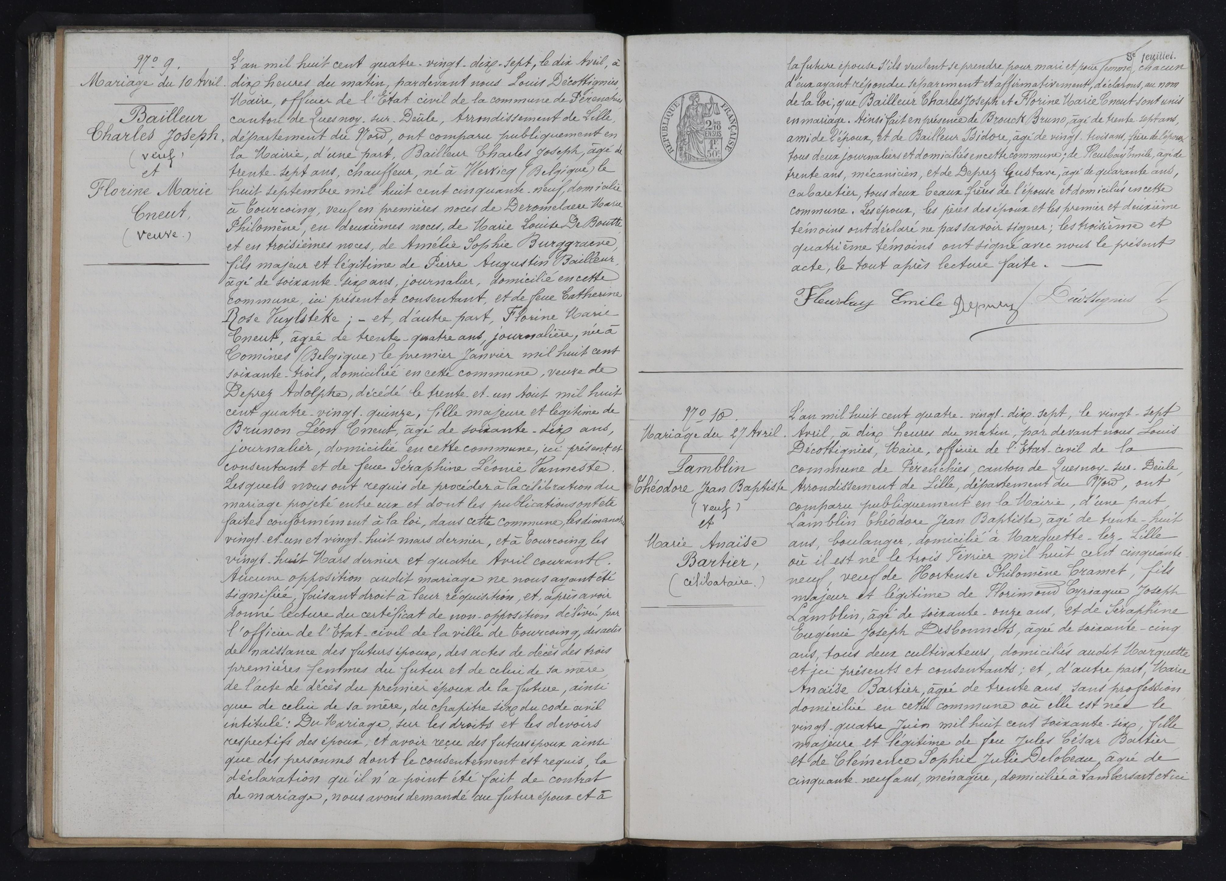 il manque a priori une page concernant le registre côté 1 Mi EC 457 R 002 des Mariages de Pérenchies entre 1882 et 1903.