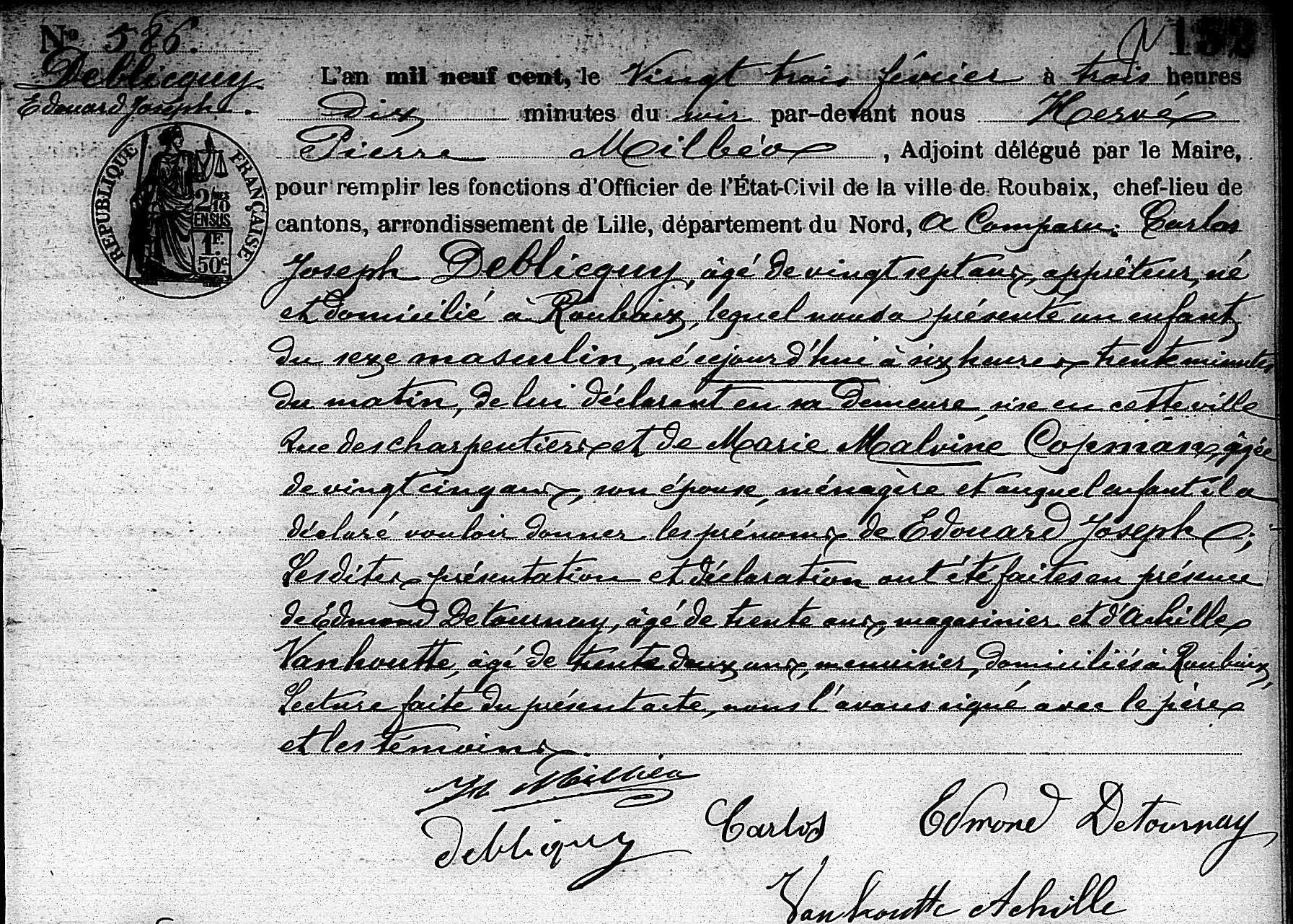 Edouard Deblicquy est né le 23 février 1900 à Roubaix