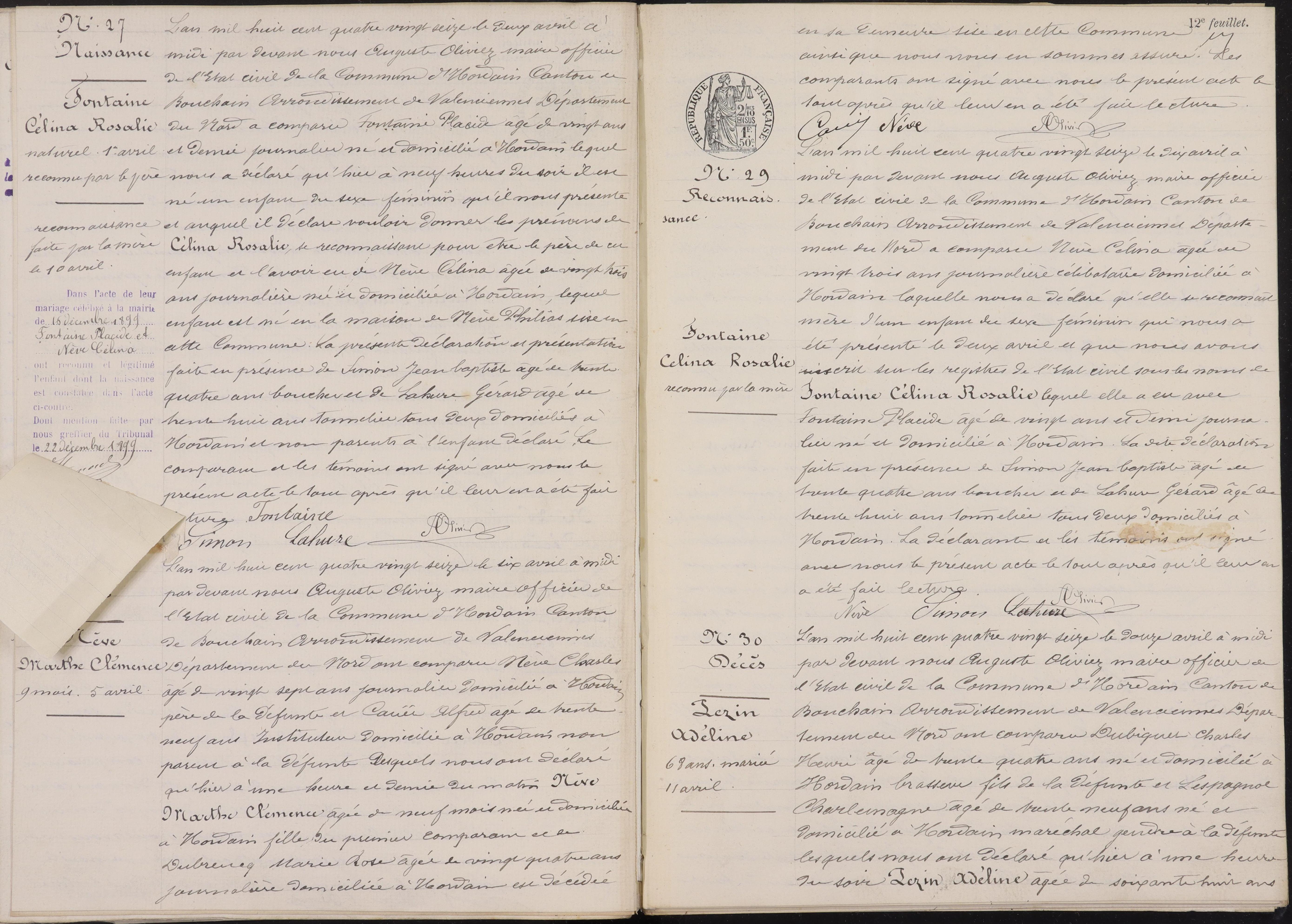 registre d' Hordain - NMD - 1886 - 1905 - 1 Mi EC 313 R 002 - page 346-347, il manque les actes n° 27, 28, 29, 30.