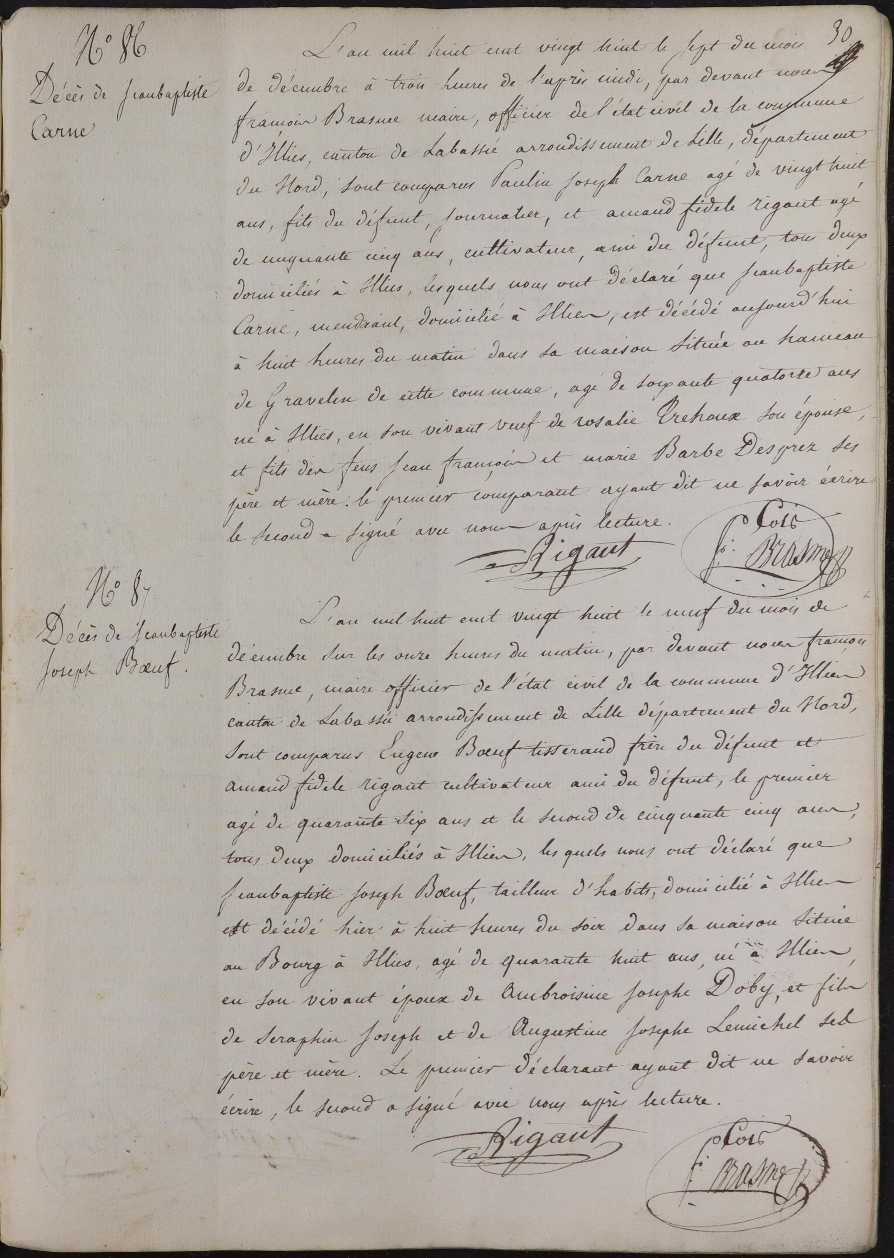 je ne trouve pas l'acte de décès de CARNE Jean Baptiste né le 10/12/1757 à Illies et décédé le 7 décembre 1828 dans cette commune.