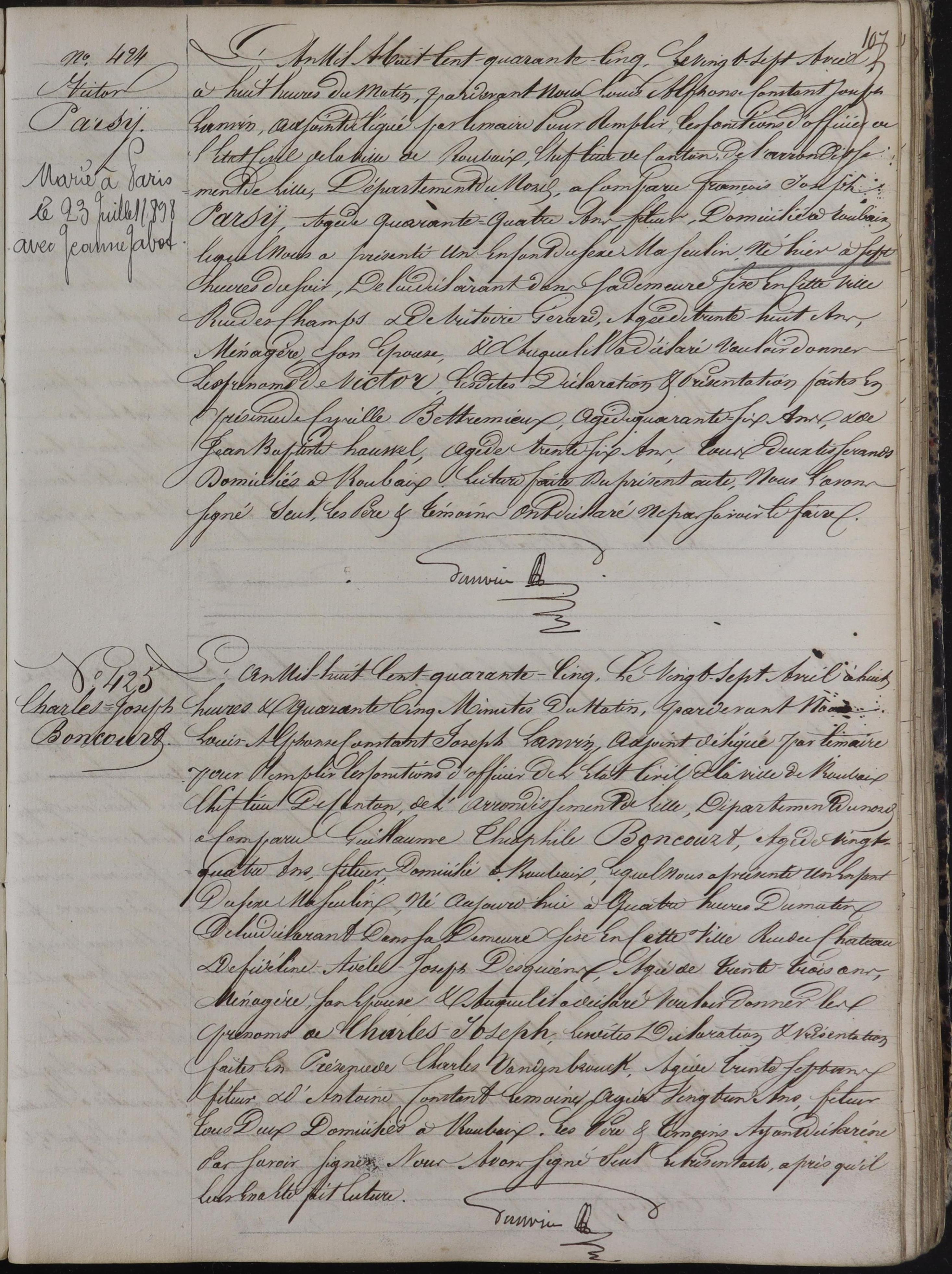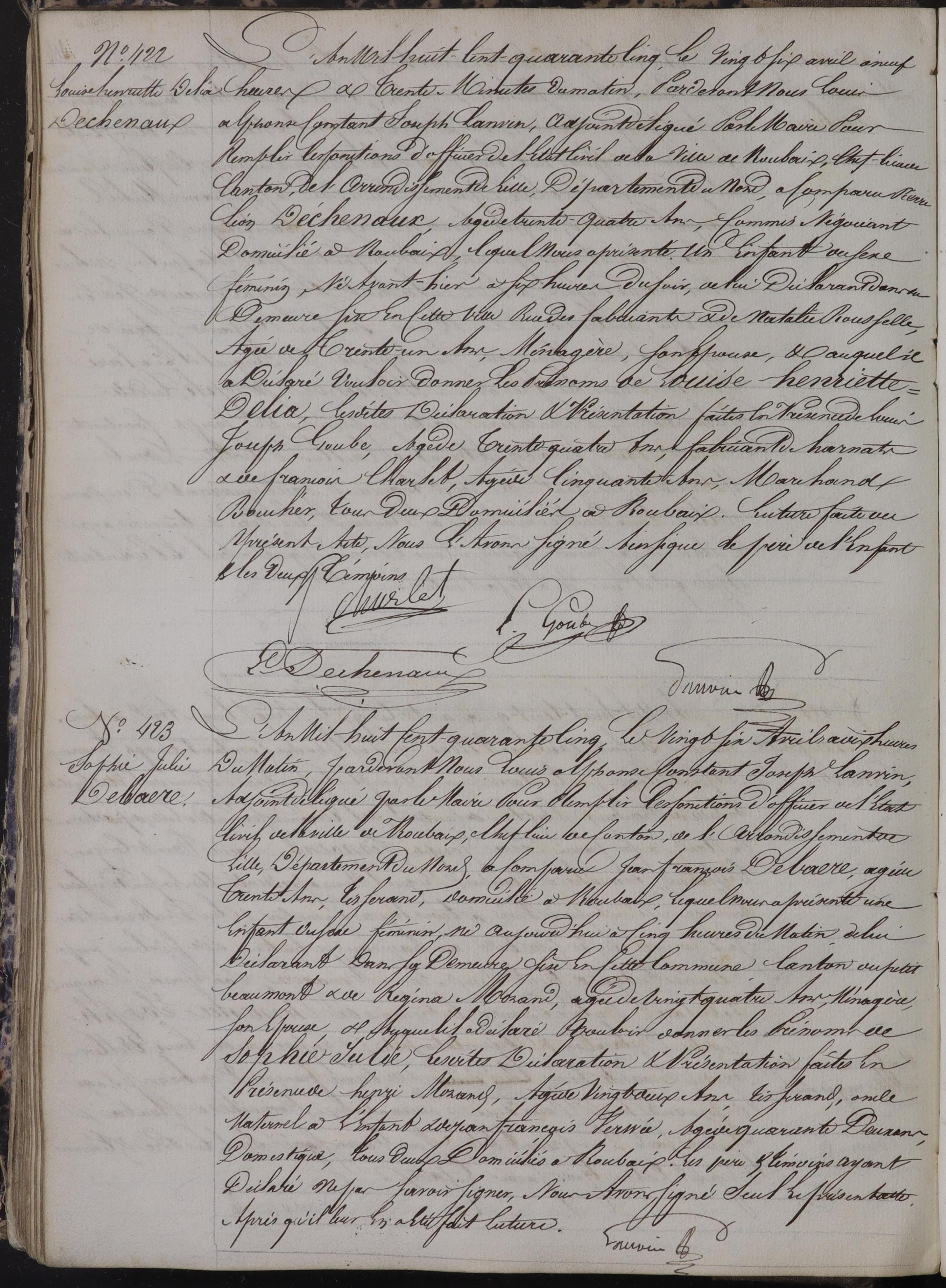 ROUBAIX / N [1845-1846]5 Mi 047 R 022 actes 422 à 425 abs