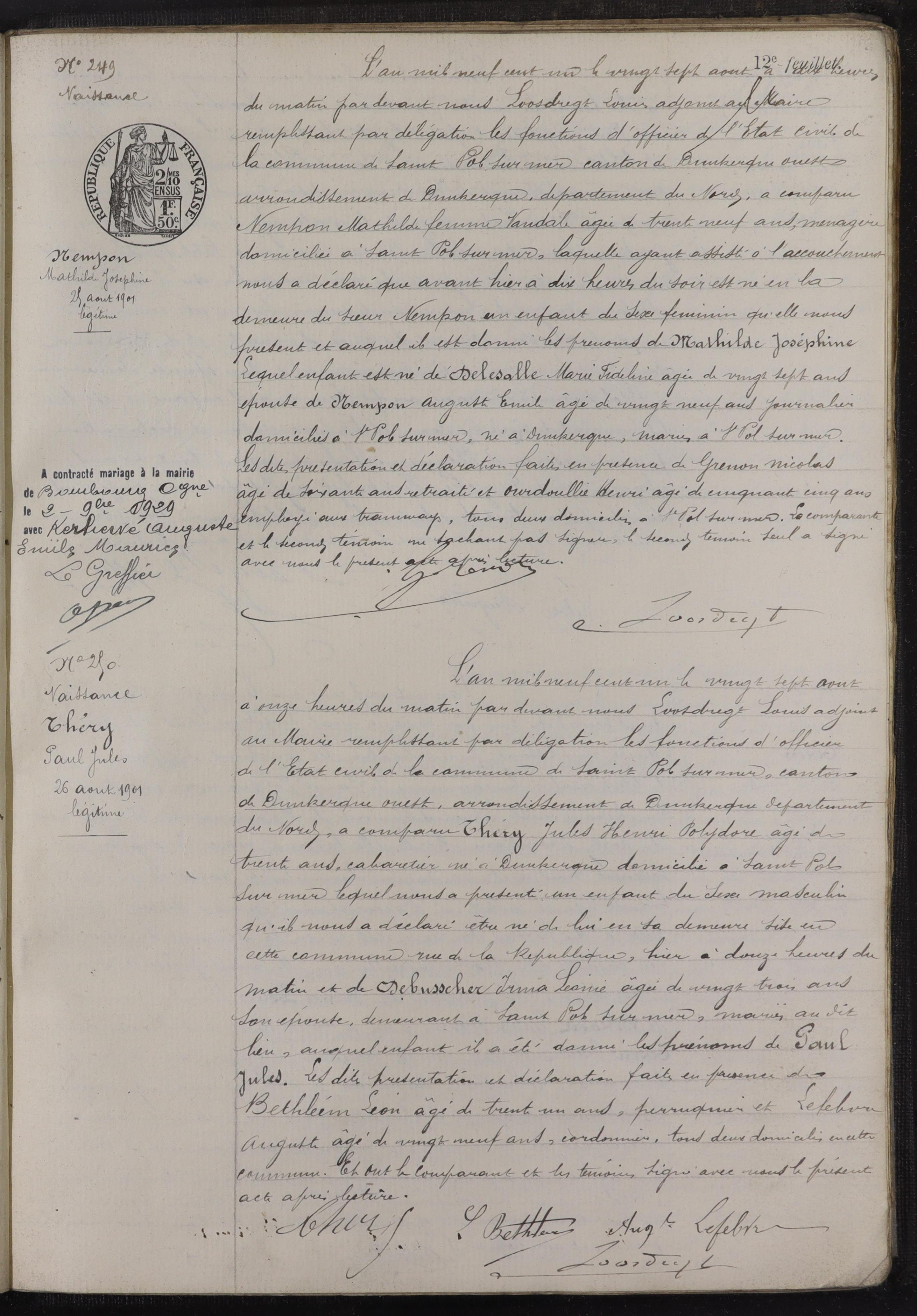 Manquent dans le registre SAINT-POL-SUR-MER / N [1901 - 1901]3 E 13775, les actes compris entre les N° 247 et 250