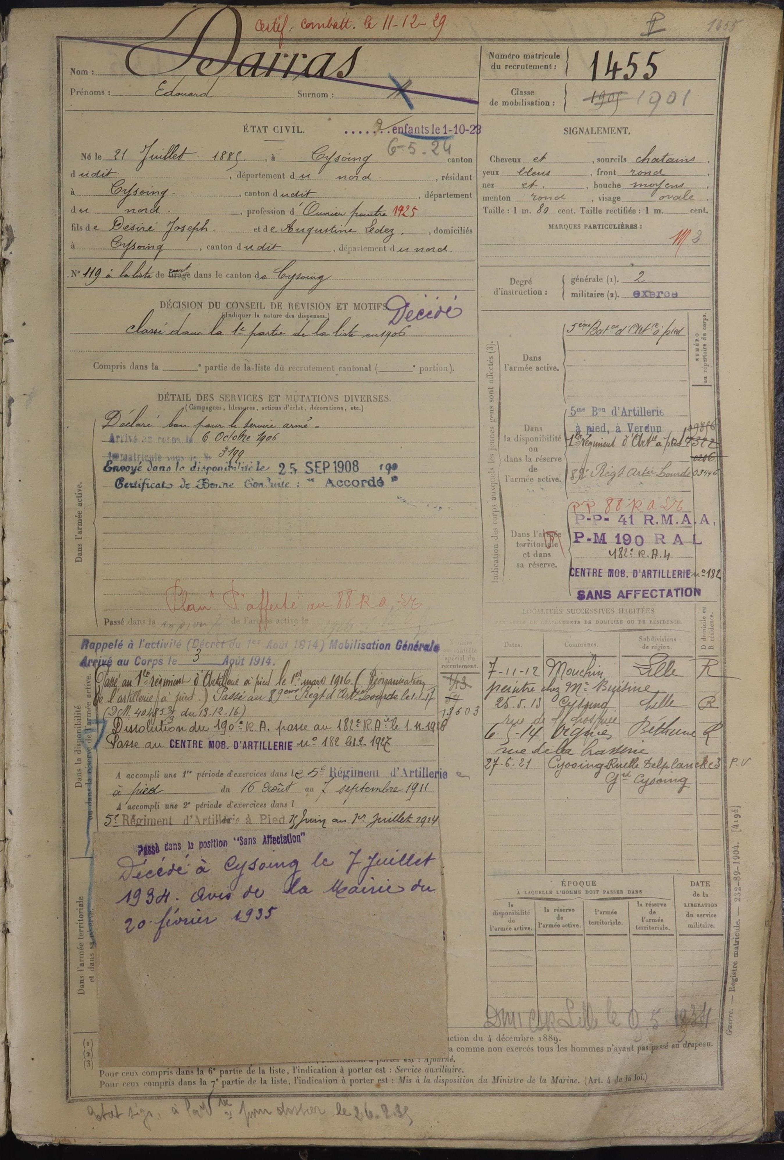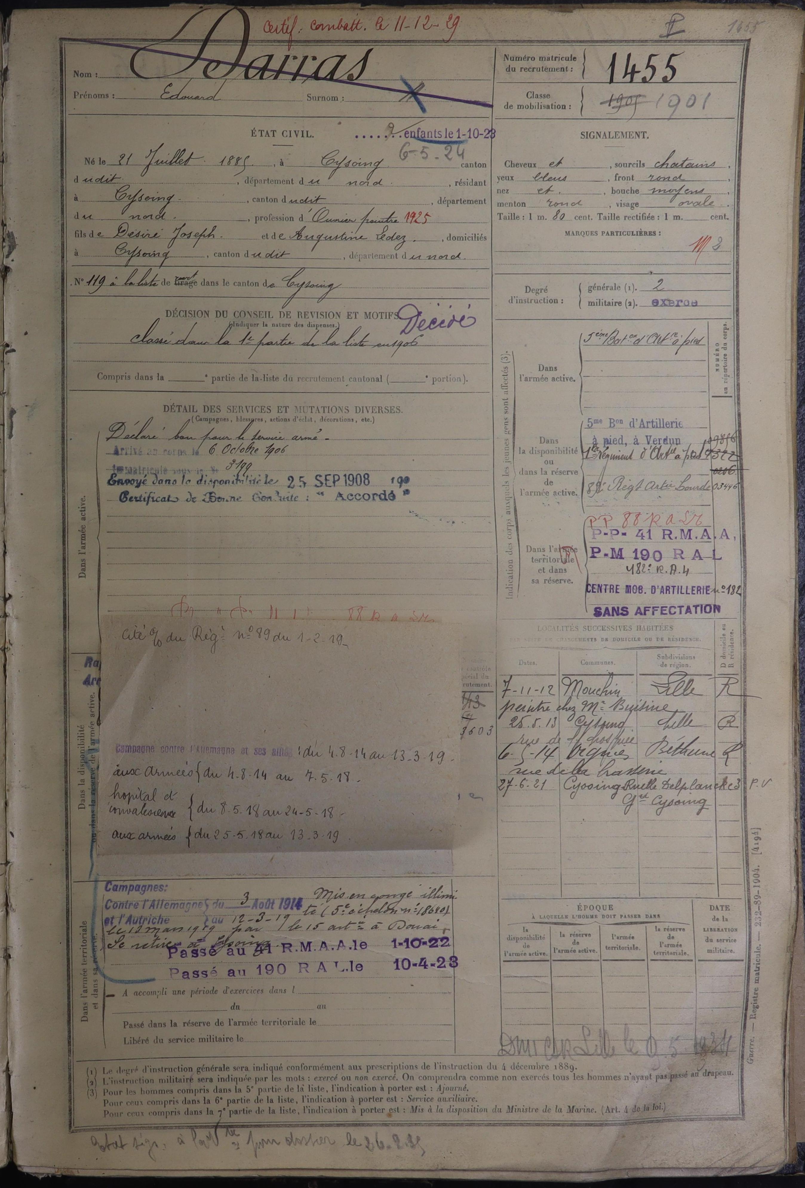 Re: Manque fiche matricule classe 1905 bureau de Lille