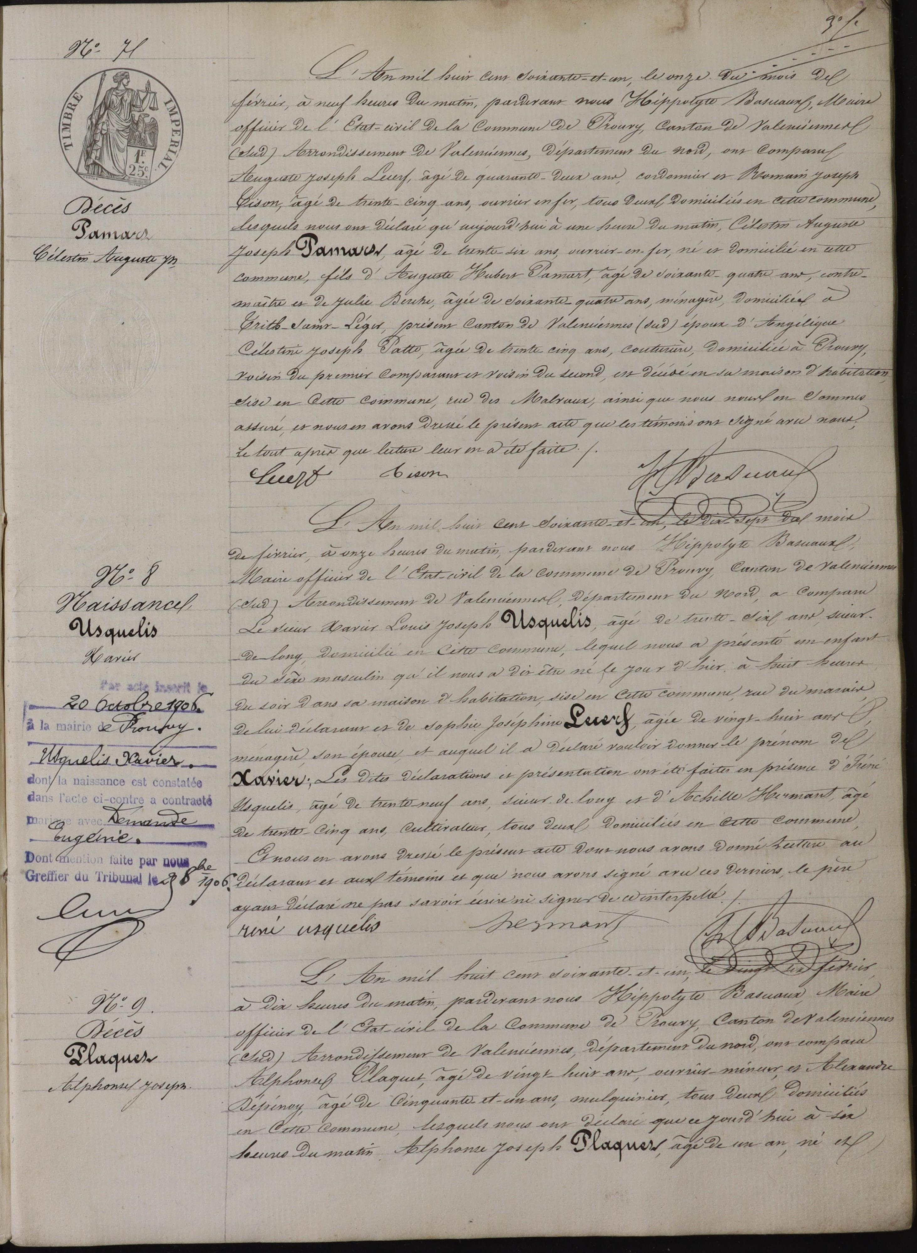 Dans le registre de Prouvy pour 1861, on passe de l'acte 5 à l'acte 10. Merci de nous mettre à disposition la page manquante.