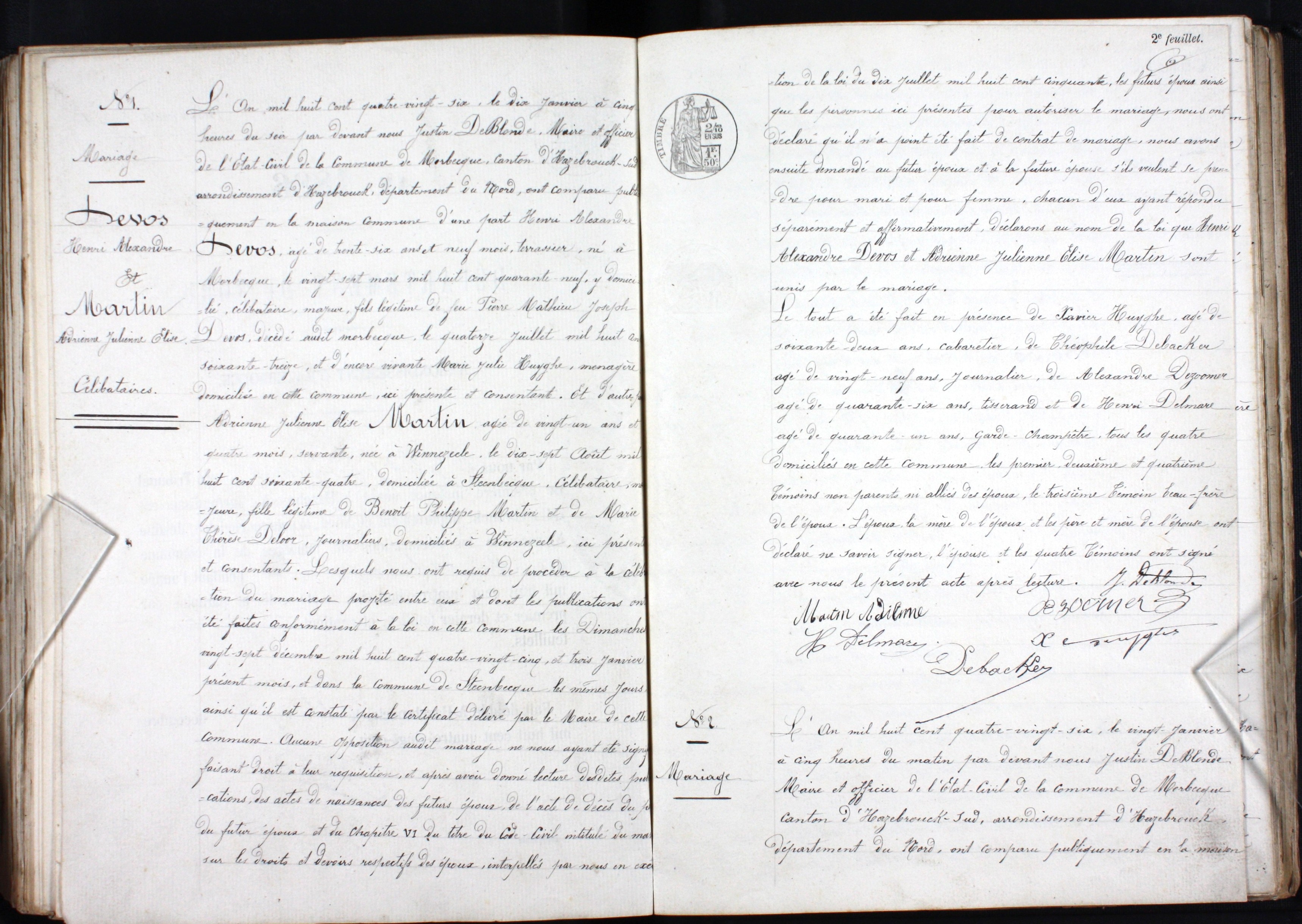 Dans ce rouleau, il manquerait un feuillet entre la page 270 et la page 271, le mariage Devos-Martin.