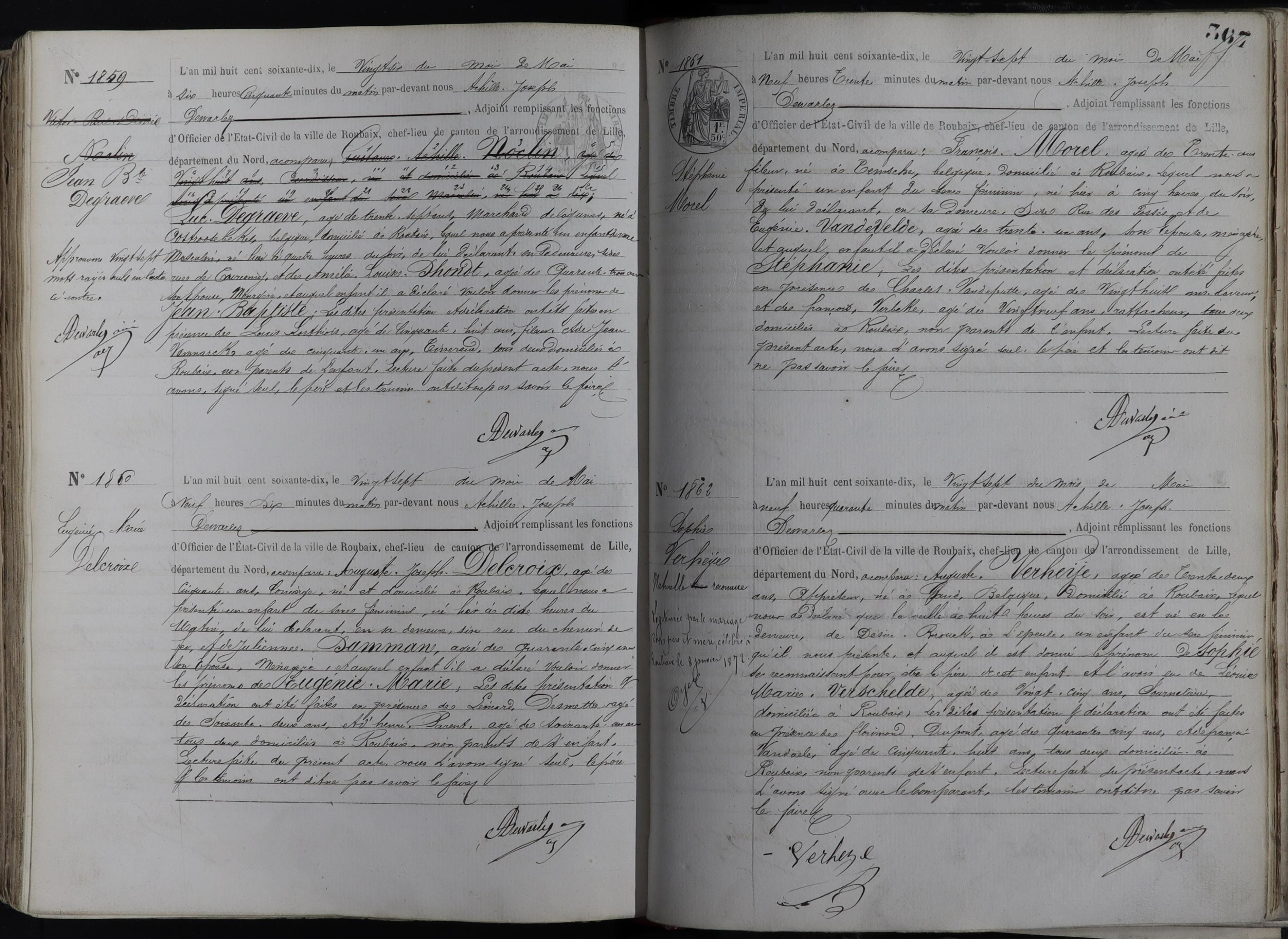 Re: Naissance Roubaix - Année 1870.