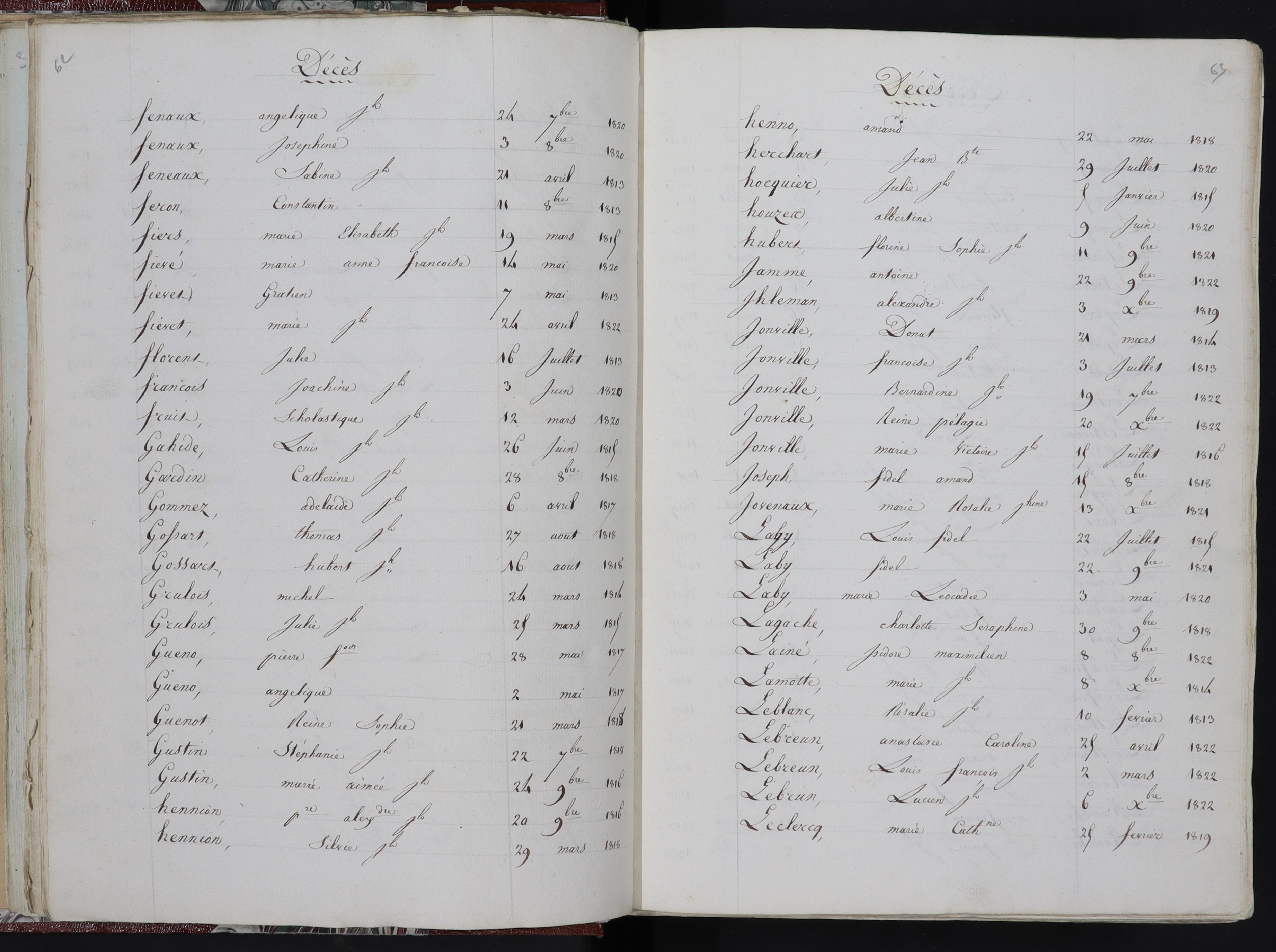 Sur les tables décennales de Willems 1813 1822 manque le scan des pages 62 et 63 des décès