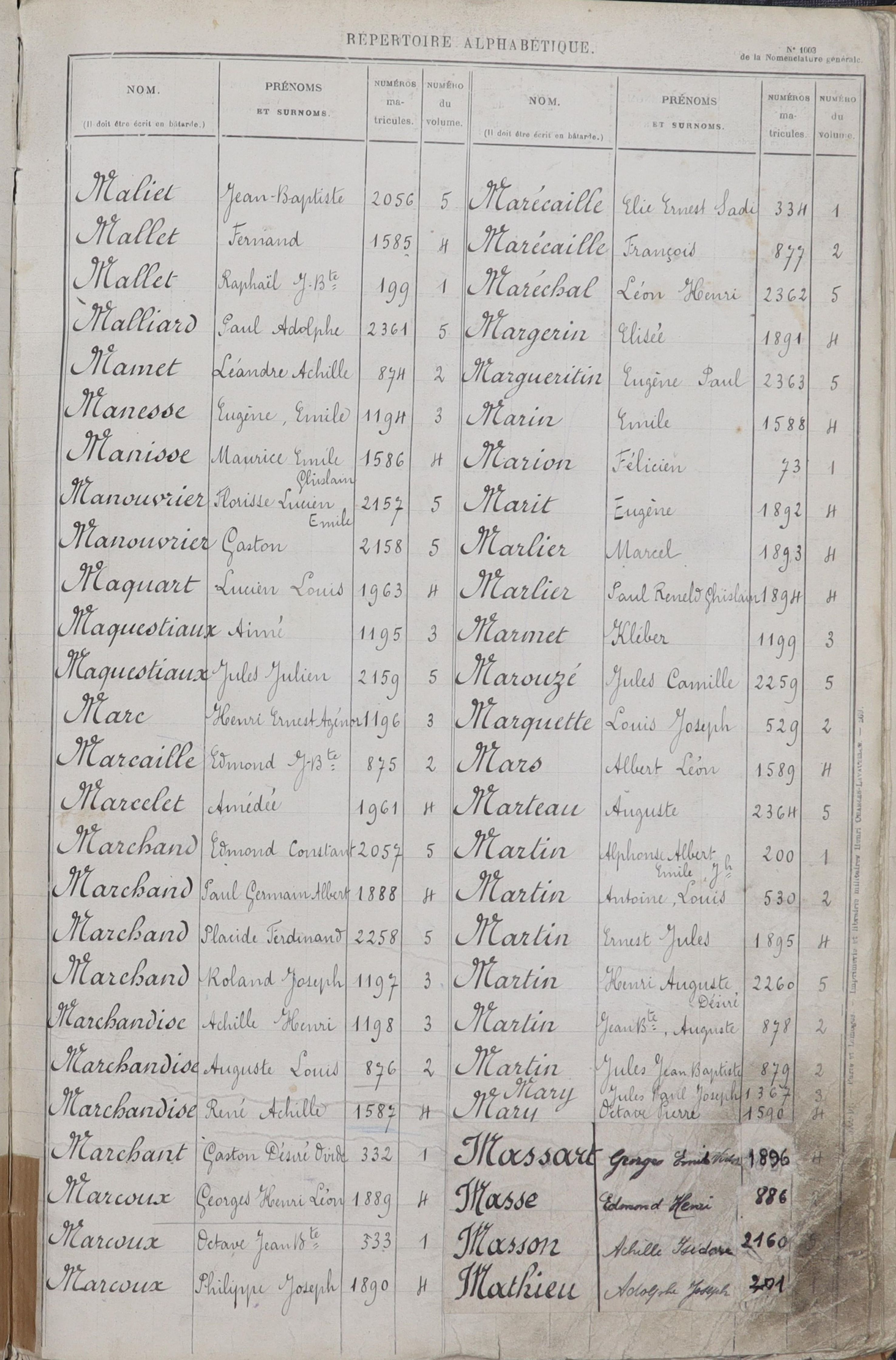 Au sein de la Table des registres matricules 1915, je ne retouve qu'un MARMET CAMILLE :