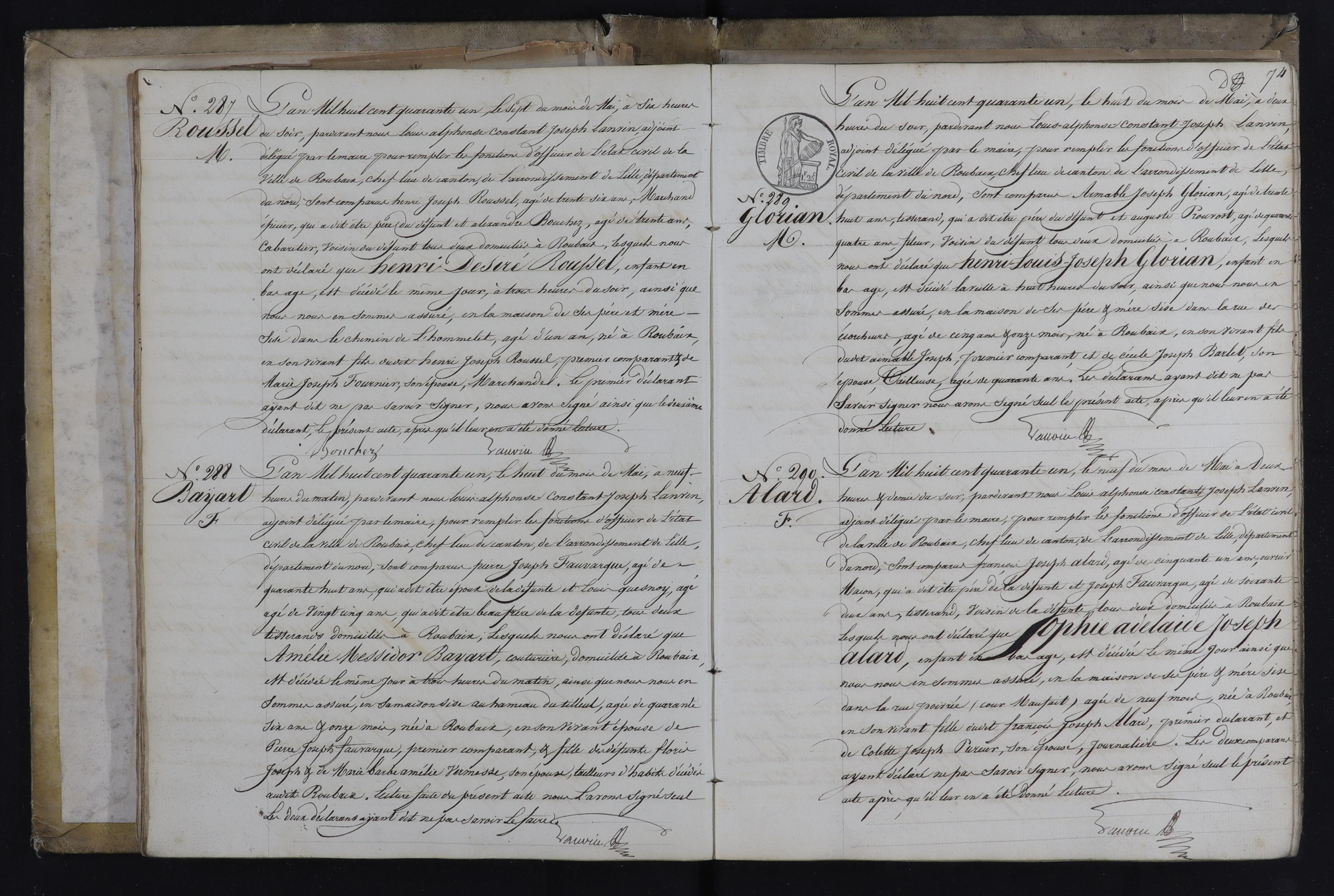 Je vous signale que le feuillet 74 des décès n°287 à 290 de l'année 1841 de Roubaix n'a été scanné qu'en partie.