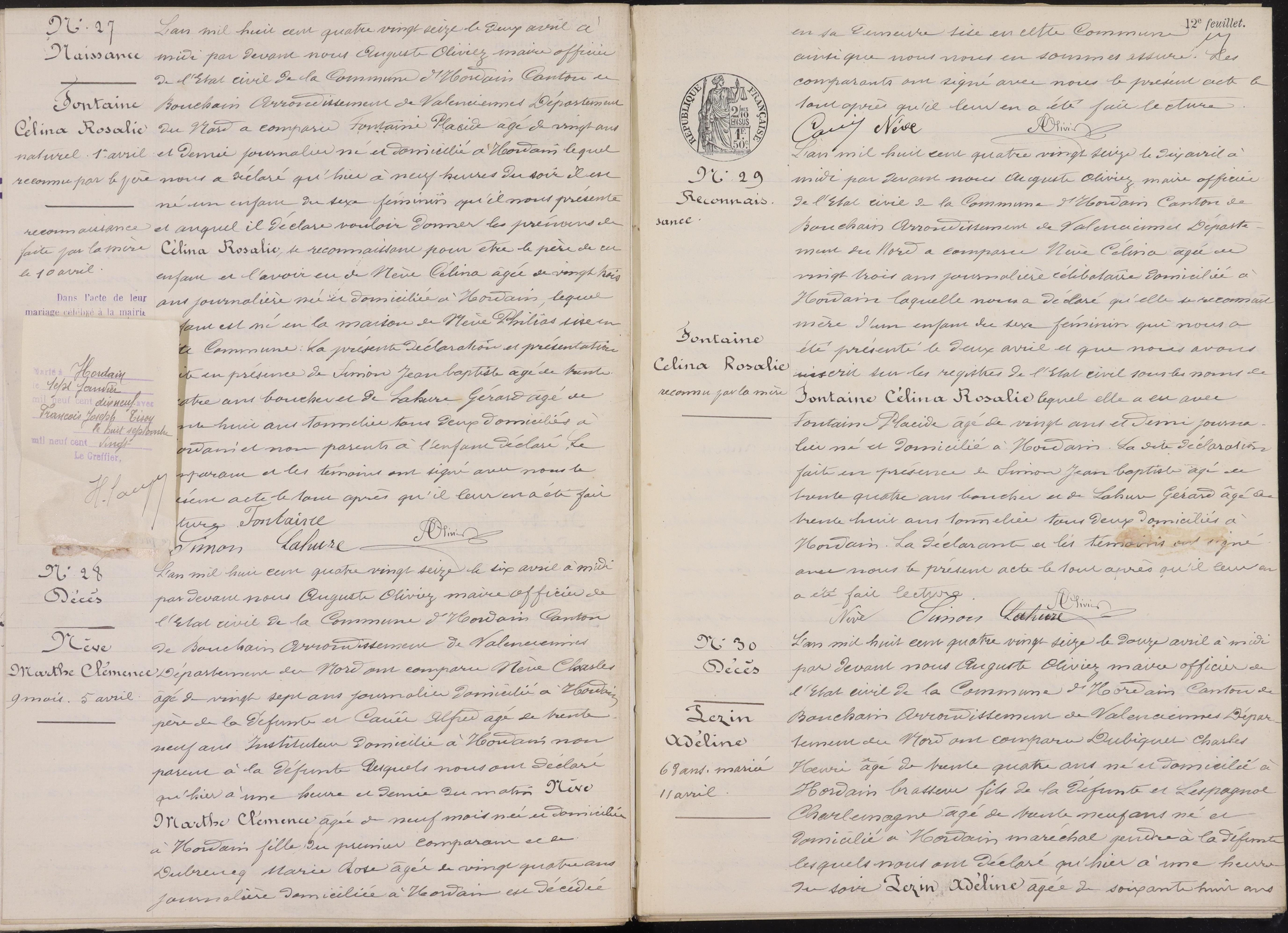 registre d' Hordain - NMD - 1886 - 1905 - 1 Mi EC 313 R 002 - page 346-347, il manque les actes n° 27, 28, 29, 30.