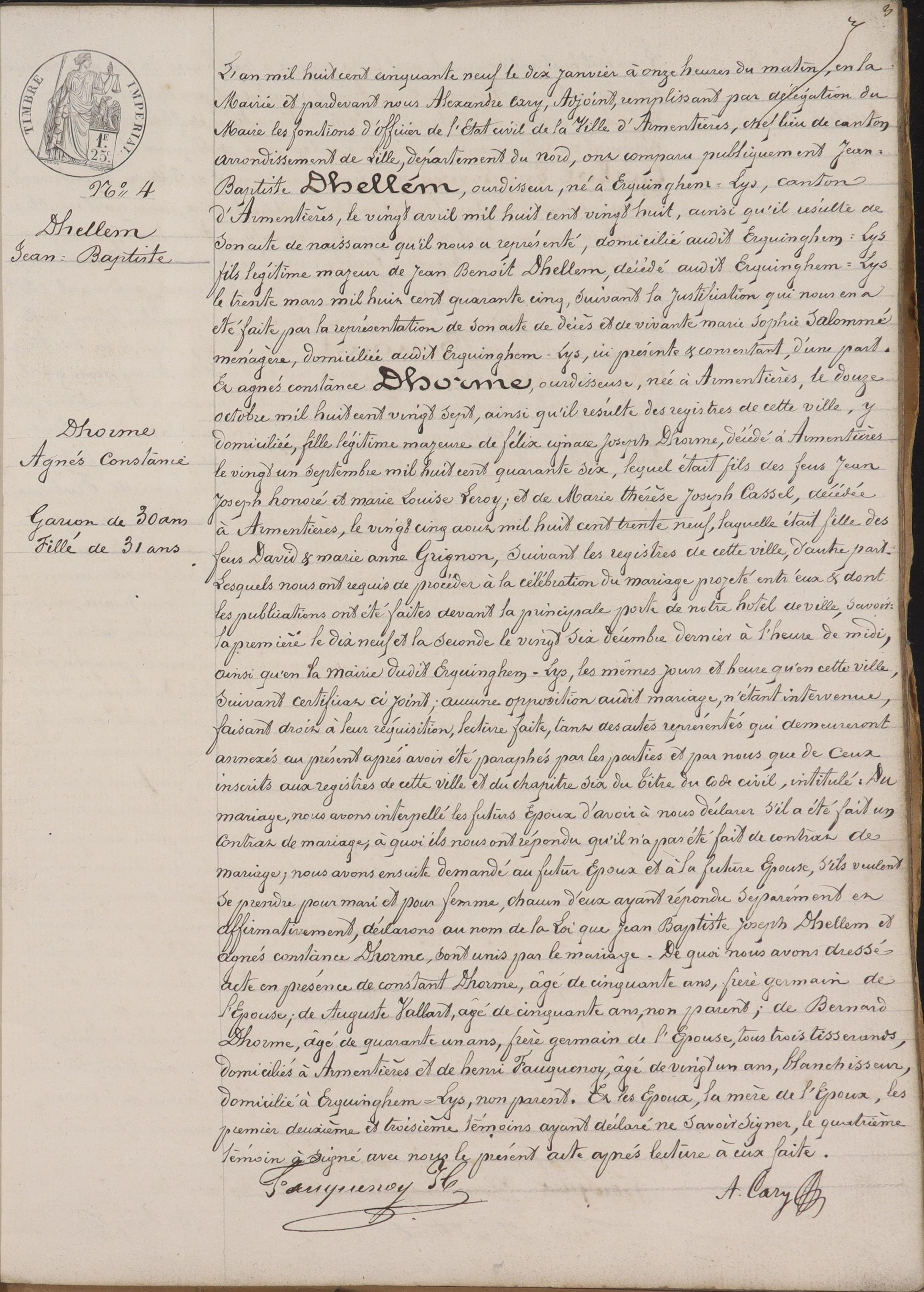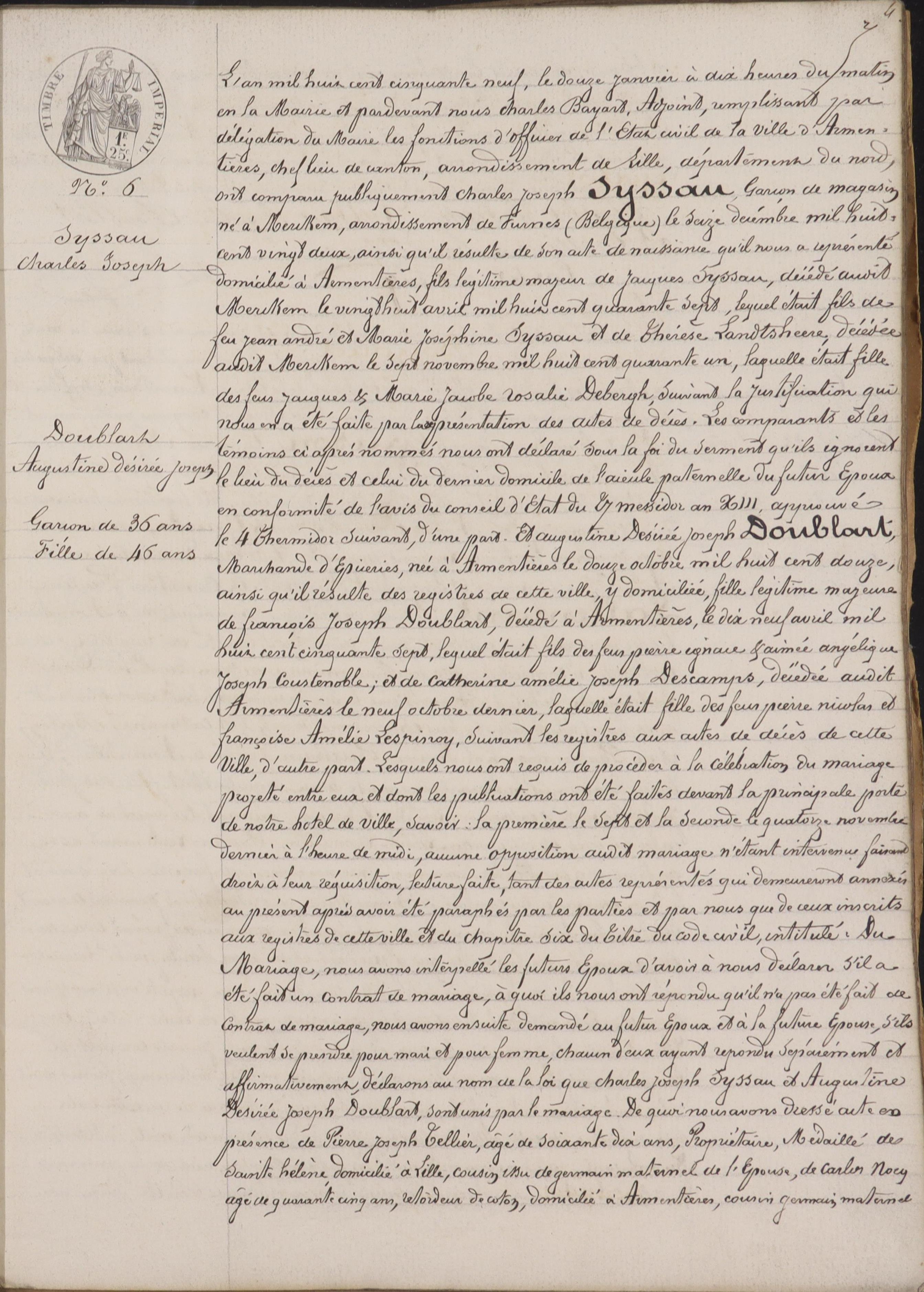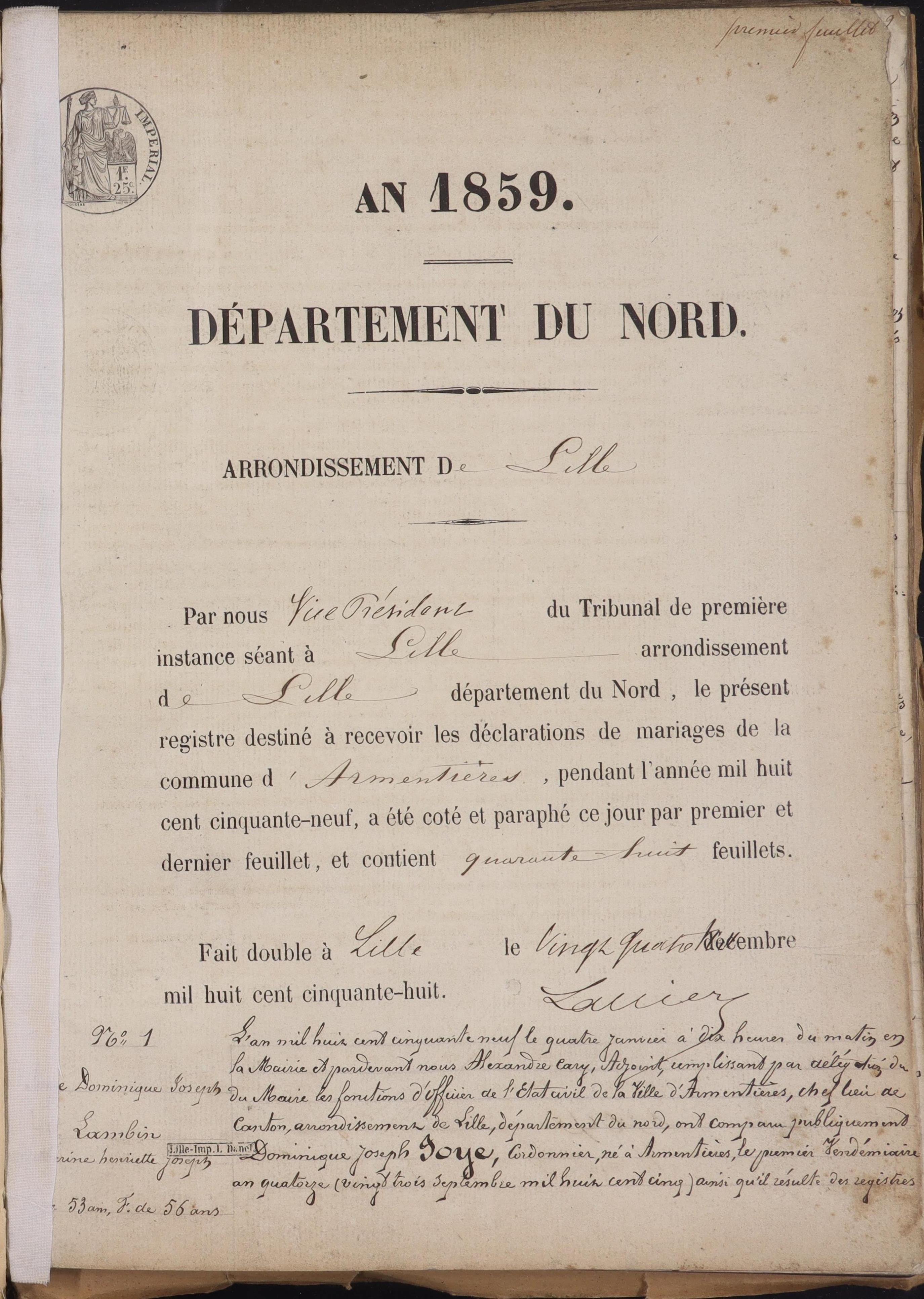 registre ARMENTIERES / M [1859-1867]5 Mi 039 R 028 - année 1859 commence à l'acte n° 7 ?