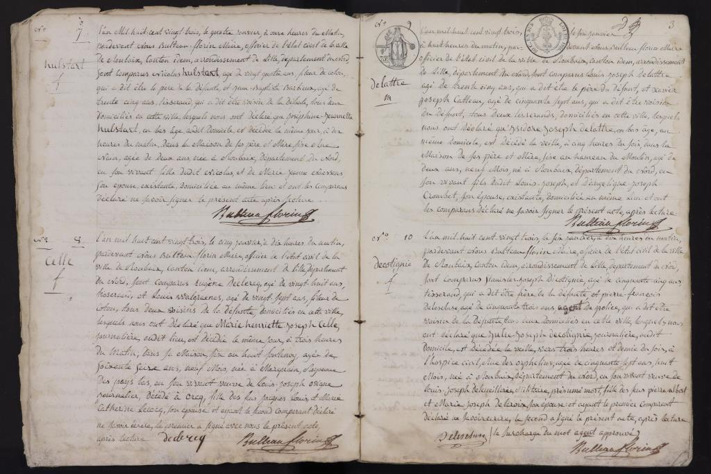 Dans le registre des décès de ROUBAIX de 1823, 5 MI 047 R 066, il manque les actes 7 à 10 des pages 2 verso et 3 recto.
