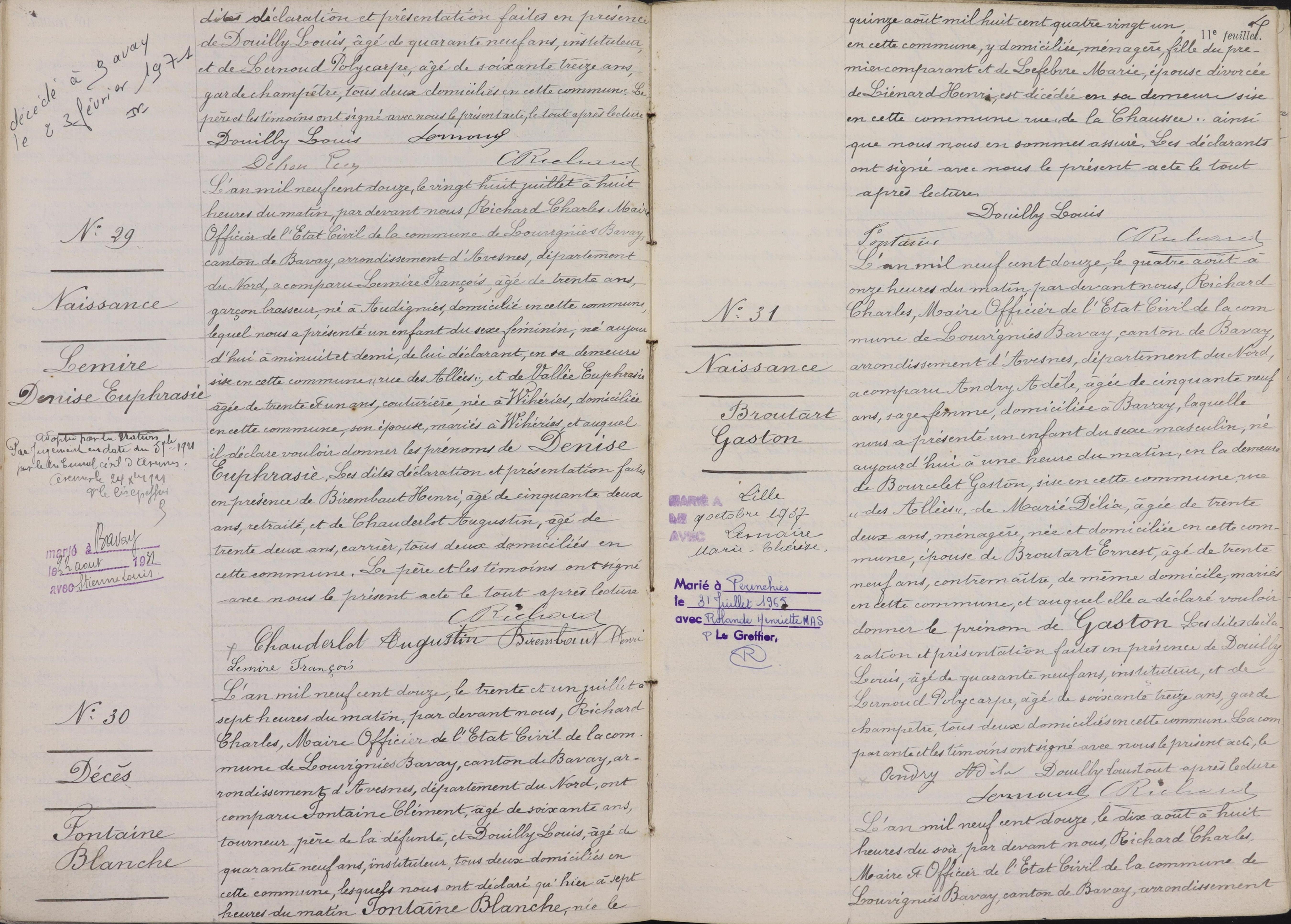 J'ai pu constater que, dans les actes d'état civil 1911-1921, les actes 29 à 31 de l'année 1912 sont absents.