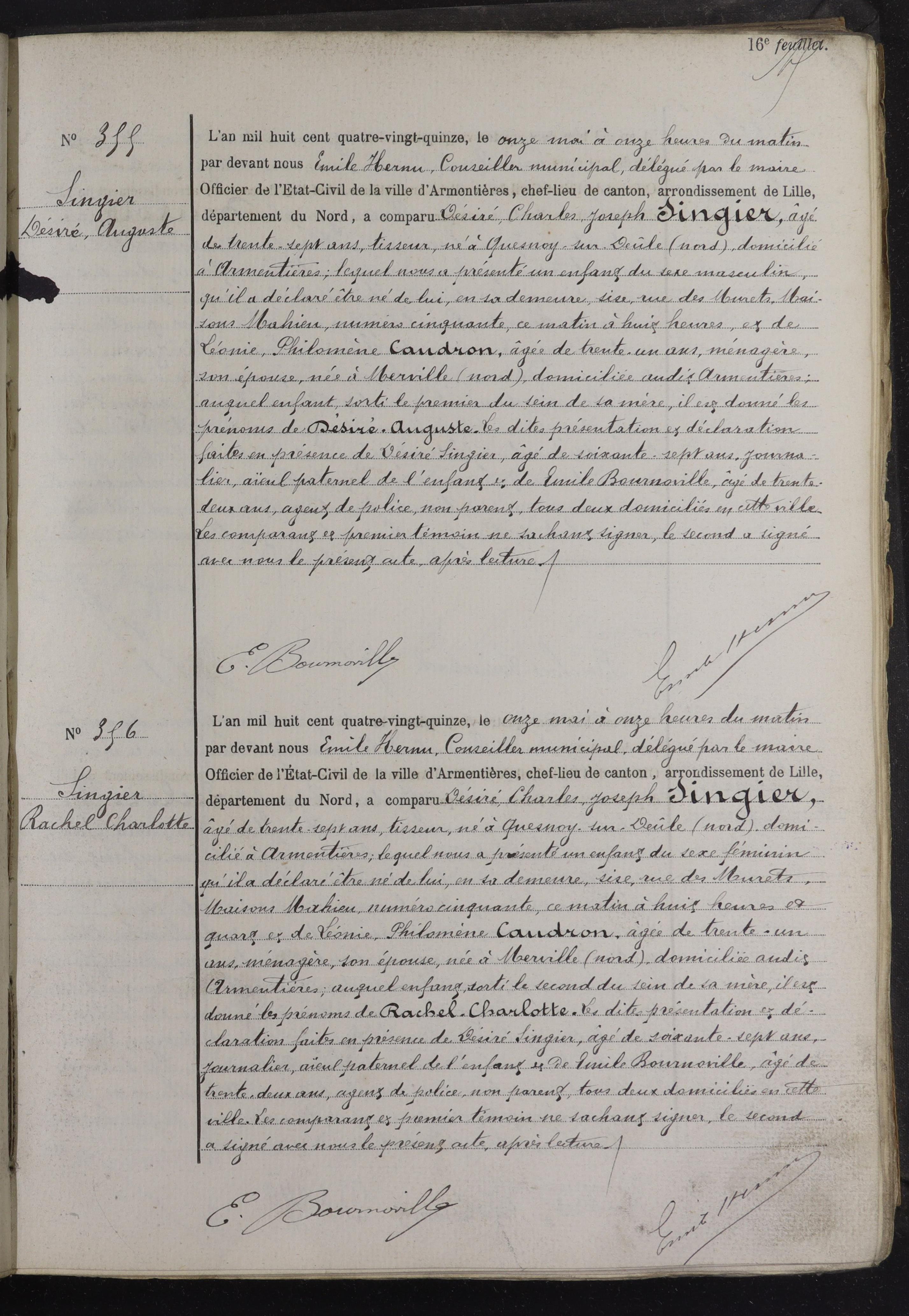 Nom de l'archive: ARMENTIERES / N, Ta [1894-1895]1 Mi EC 017 R 019Site Web des Archives départementales du Nord