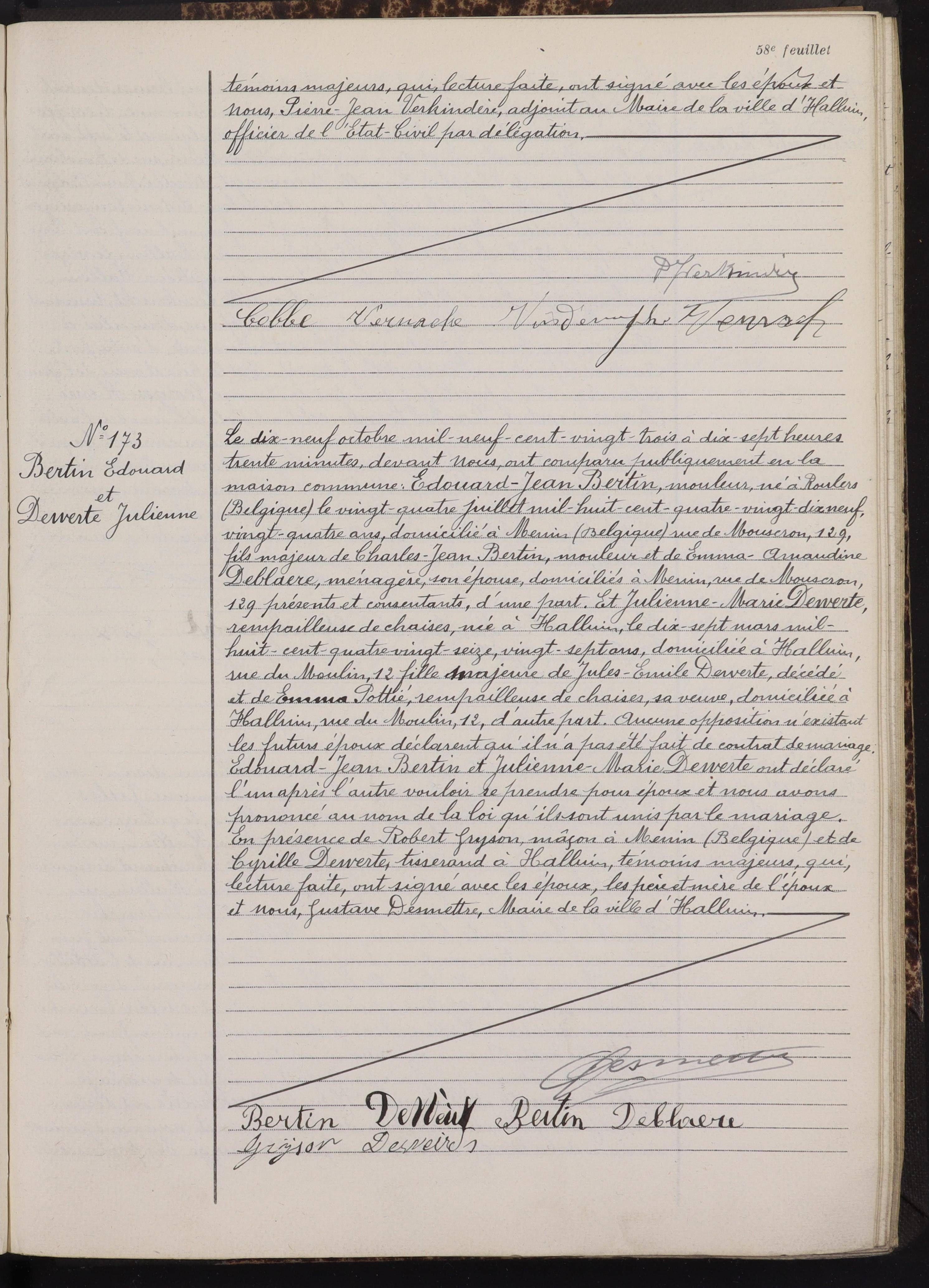 Dans le registre des Mariages à Halluin (1922-1925), une page n'a pas été scannée.