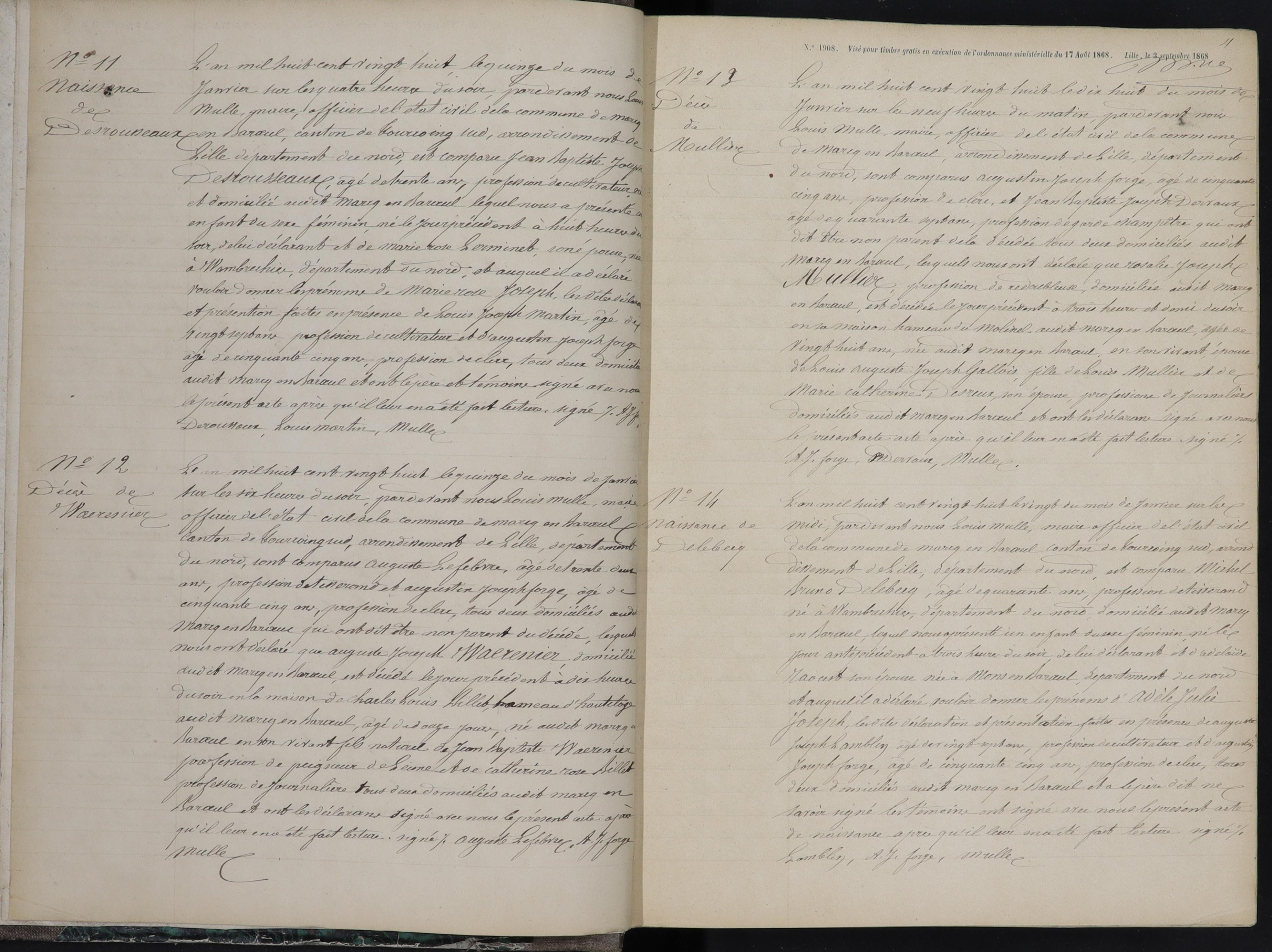 Je suis pour ma part à la recherche de l'acte n°13, concernant le décès de MULLIER Rosalie Joseph.