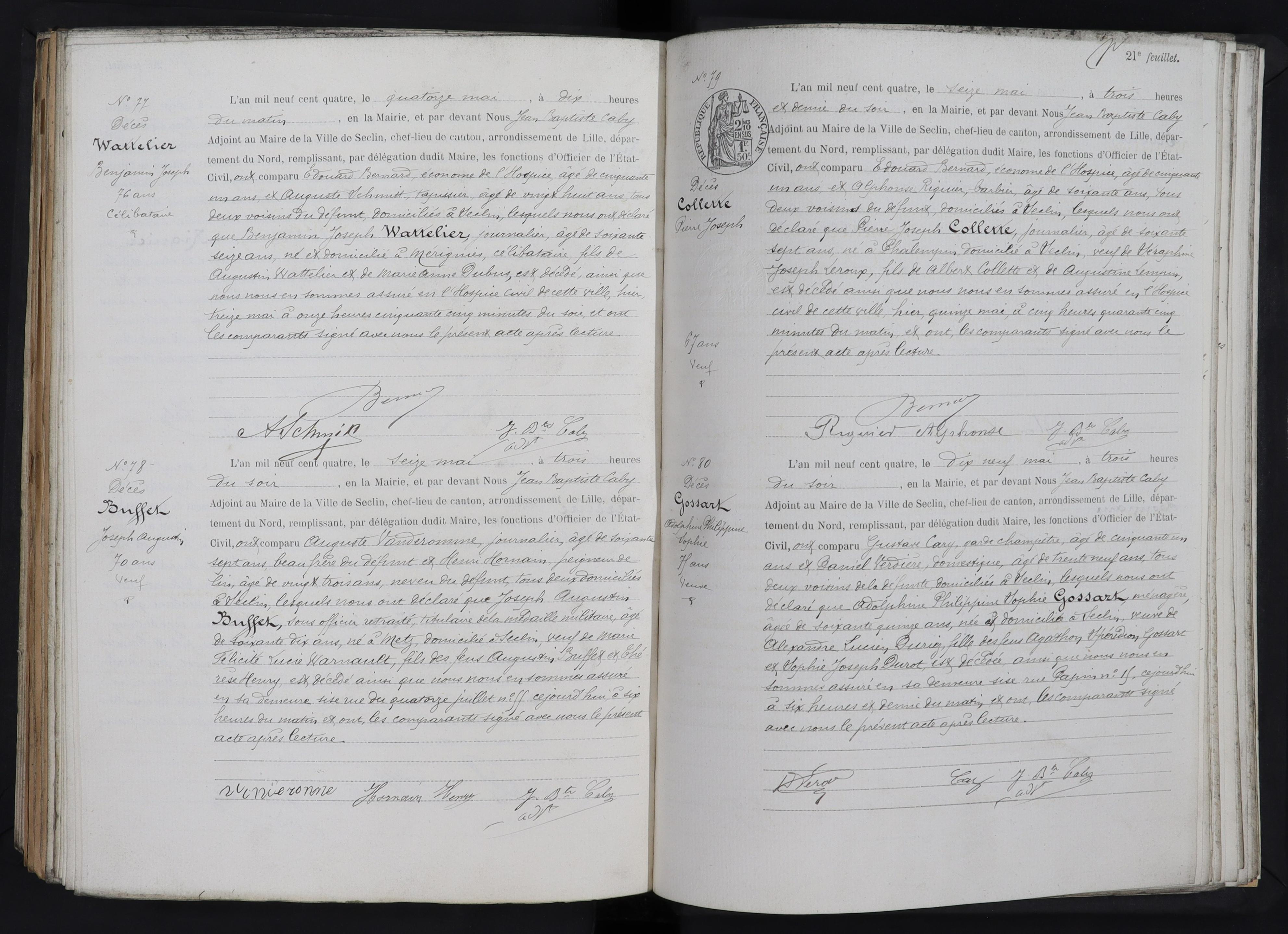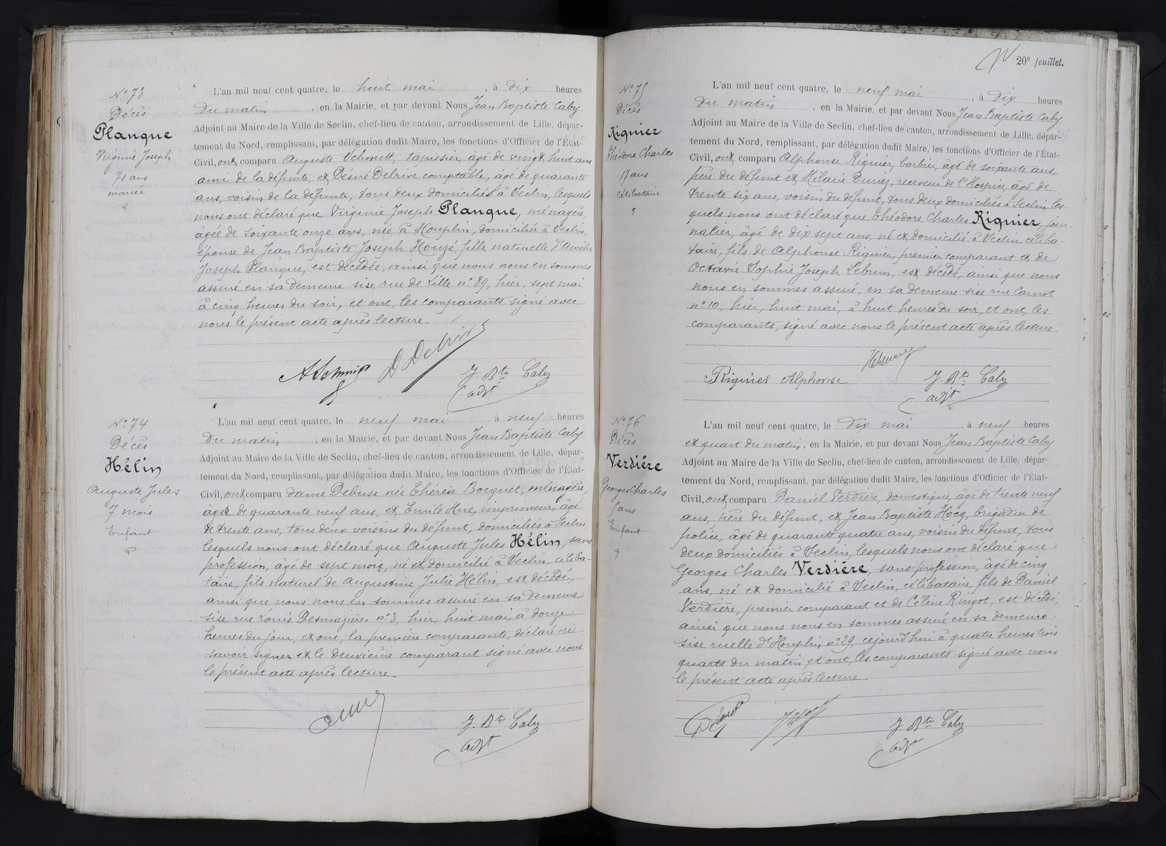 Or dans les archives de Seclin: D [1900-1904] 3 E 16123, il manque les actes 73 à 80 (entre les pages 222 et 223)