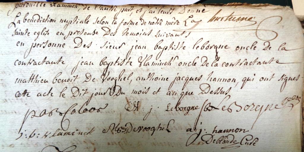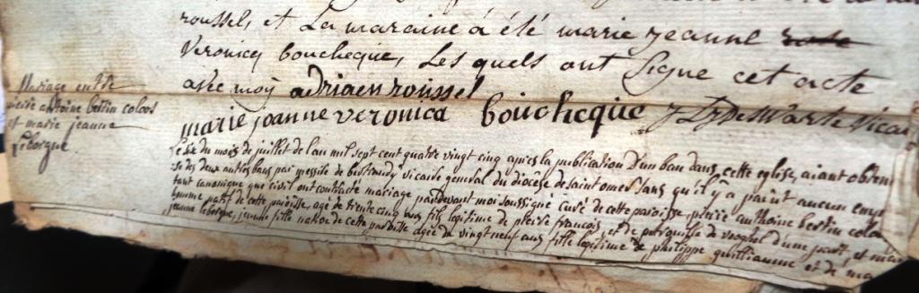 J'ai énormément de mal à décrypter un acte de mariage du 10 Juillet 1785, dans la ville de Millam. L''acte ce trouve en bas de la feuille de gauche, et semble écrasé lors du scan. (Millam 1737-1792 vue 598/711)