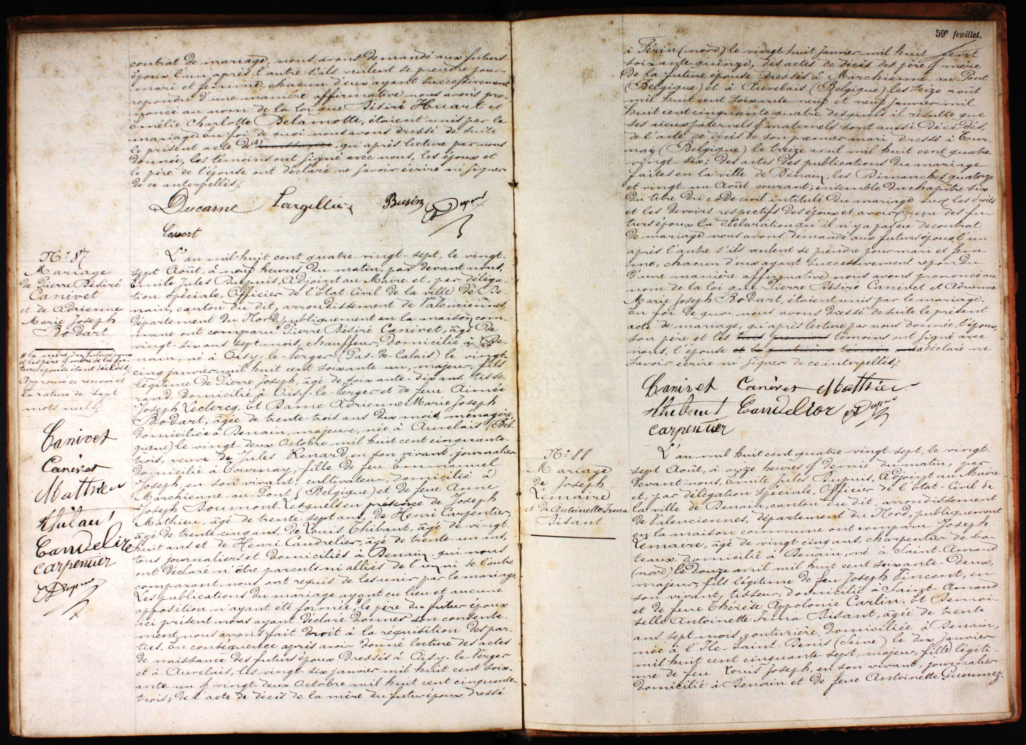 C'est l'acte de Mariage n° 87, en date du 27/08/1887, entre Pierre Désiré Canivet et Adrienne Bodart qui m'intéresse. Je voudrais vérifier les parents de Pierre Désiré.