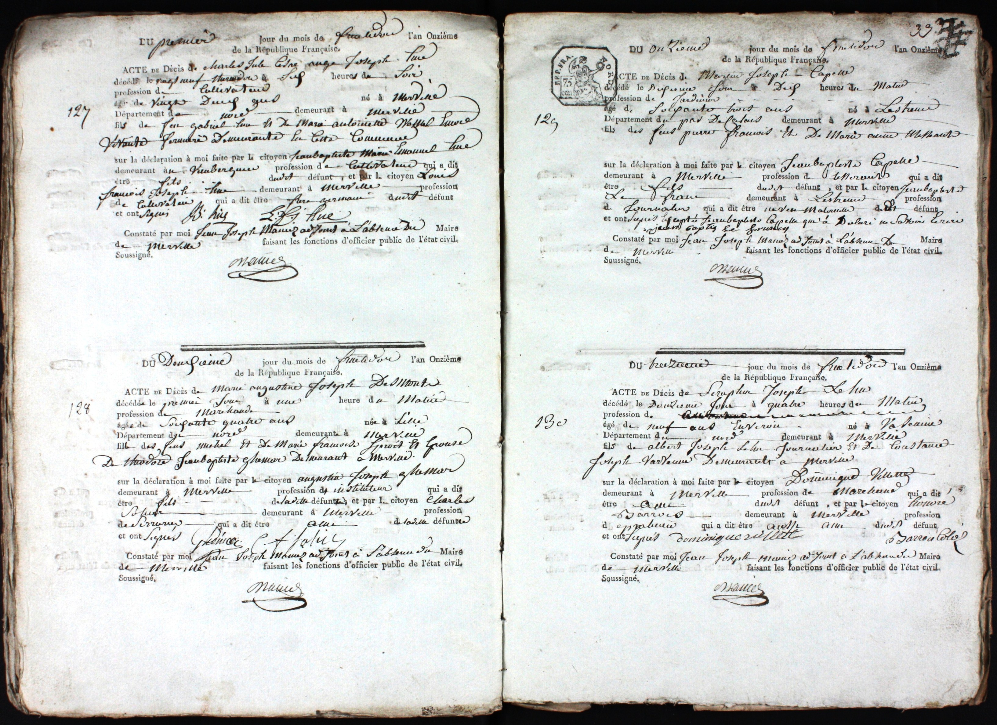 Dans ce rouleau, pour l'année 1803, il manque les actes 127 à 129. Pages 1226-1227.