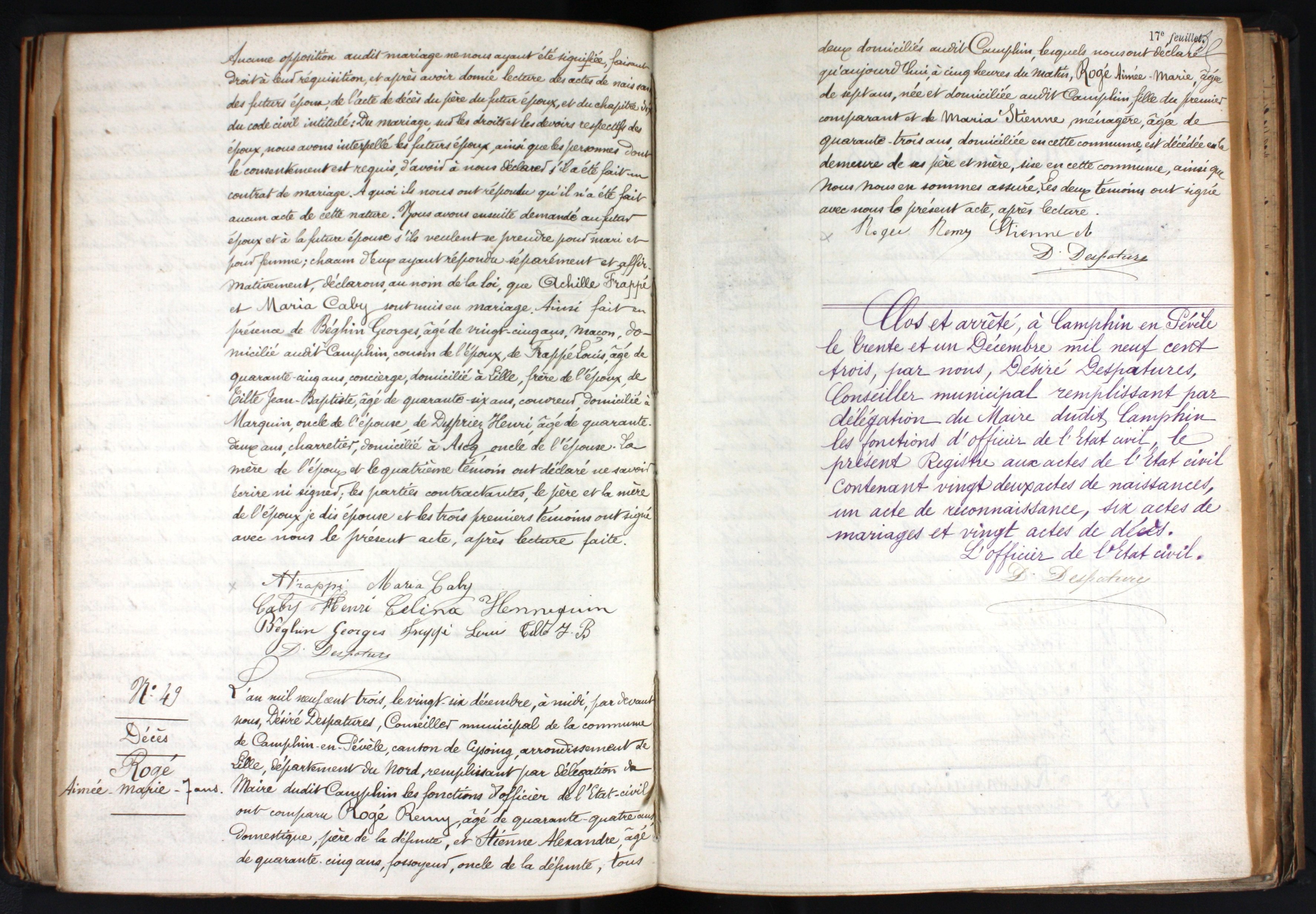 Il manque les pages de décembre 1903 dans le registre 3 E 14591 Camphin-en-pévèle NMD 1899-1907 entre les vues 114 et 115