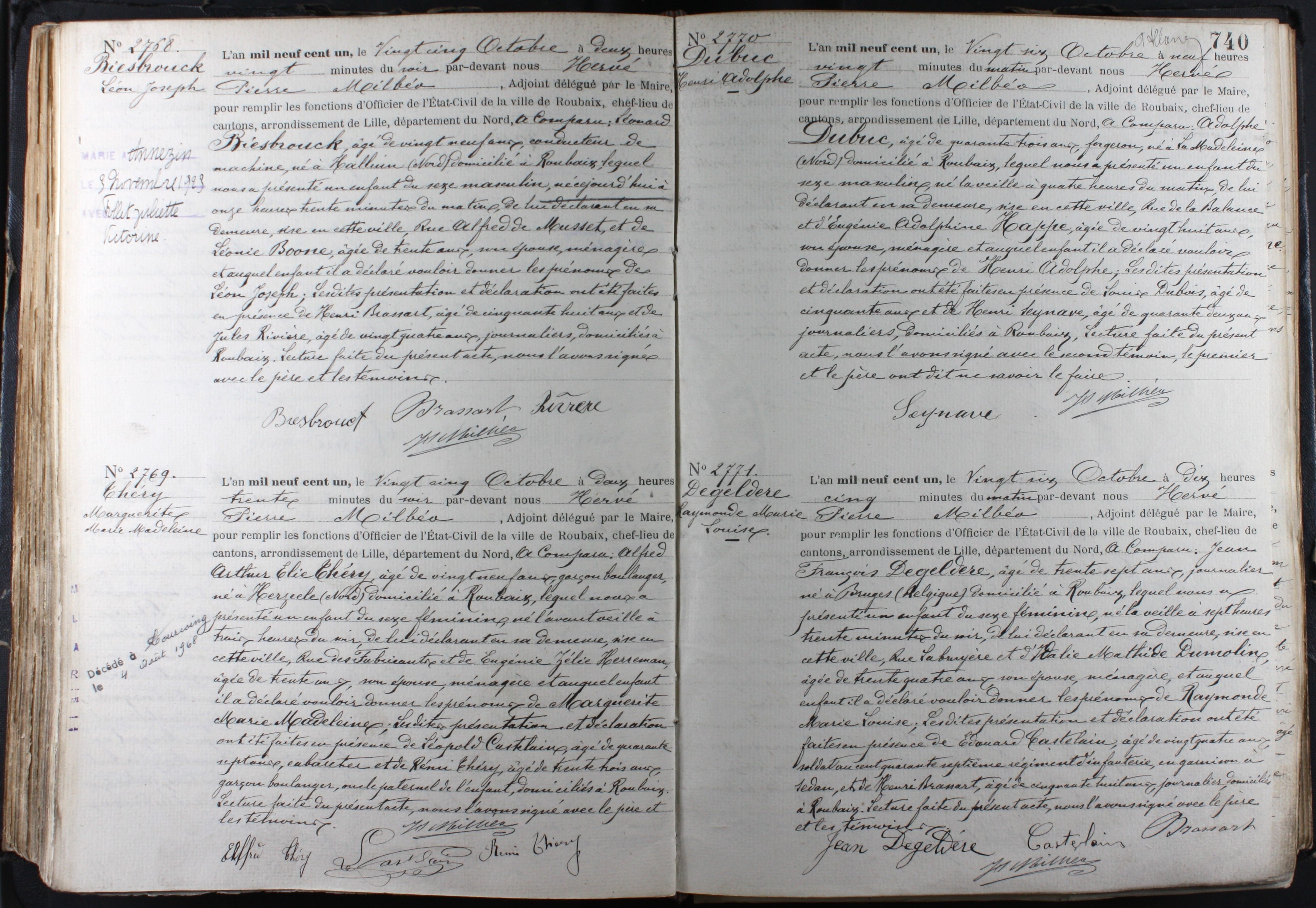 Les actes de naissances 2768 à 2771 sont manquants sur la numérisation de l'année 1901.