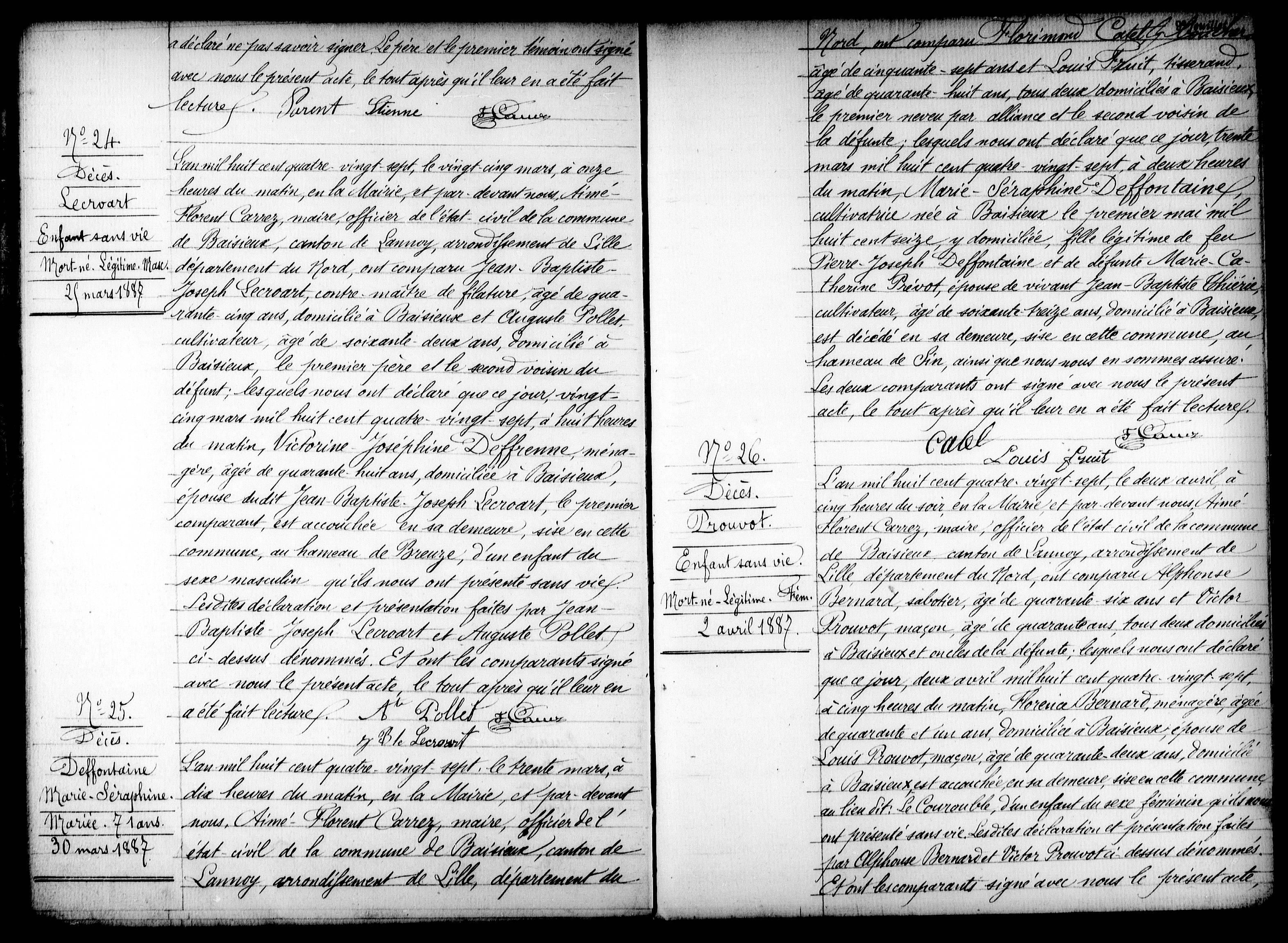 je vous joins l'acte de décès pour DEFFONTAINE Marie Séraphine
